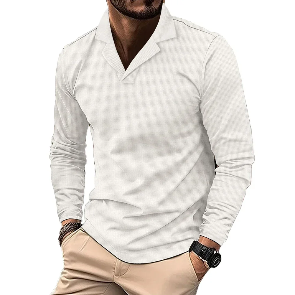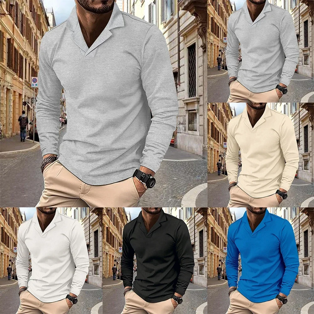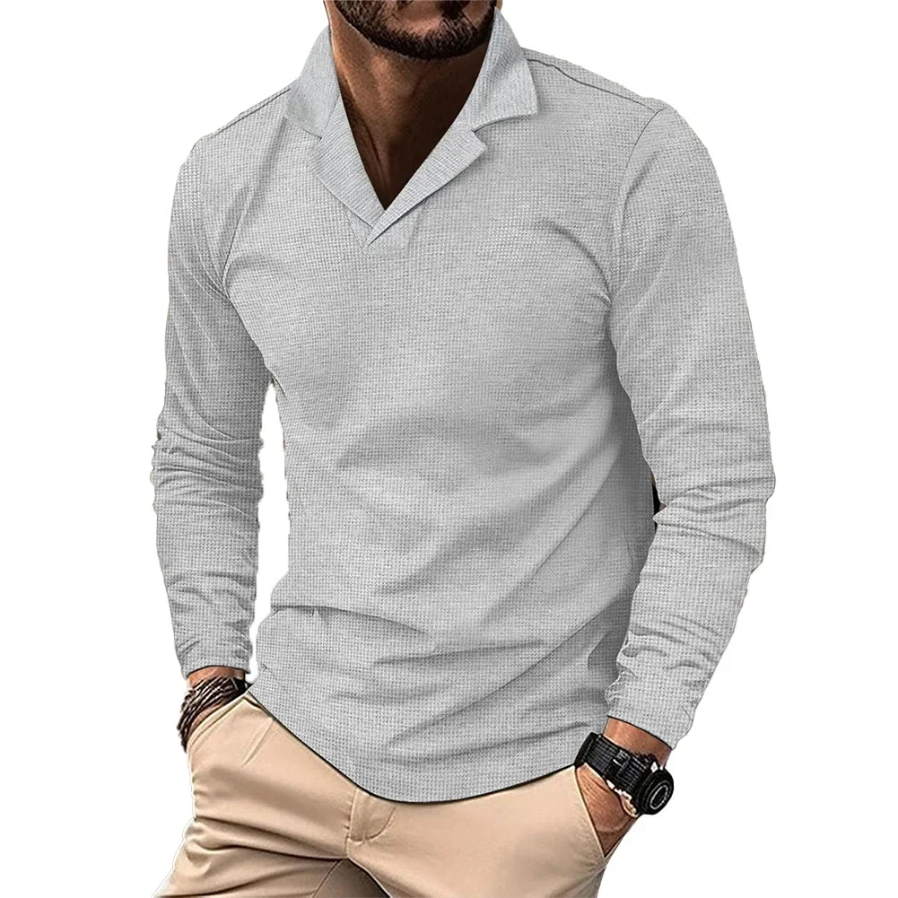 Long Sleeve Tee Fitness Workout Top Fitness Slim Fit Turn Down Collar V-Neck Design Casual Style Mens Clothing