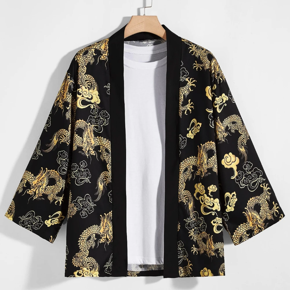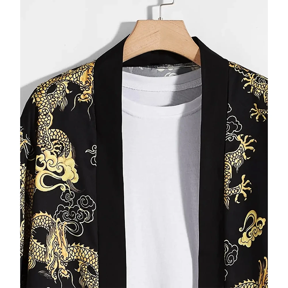 Men's dragon print kimono Japanese long-sleeved loose comfortable yukata Haoli Cardigan samurai traditional Japanese clothing