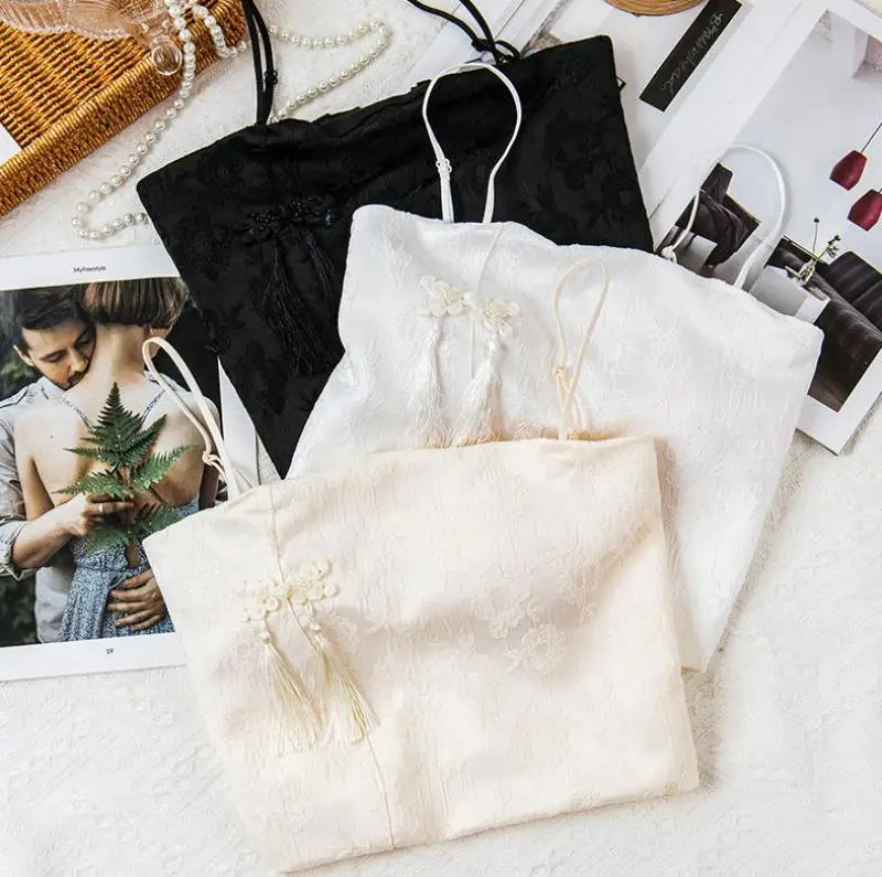 1Pc New Chinese Cheongsam Style Retro Small Camisole Vest Women Summer Fashionable All-Match Exquisite Short Sleeveless Top
