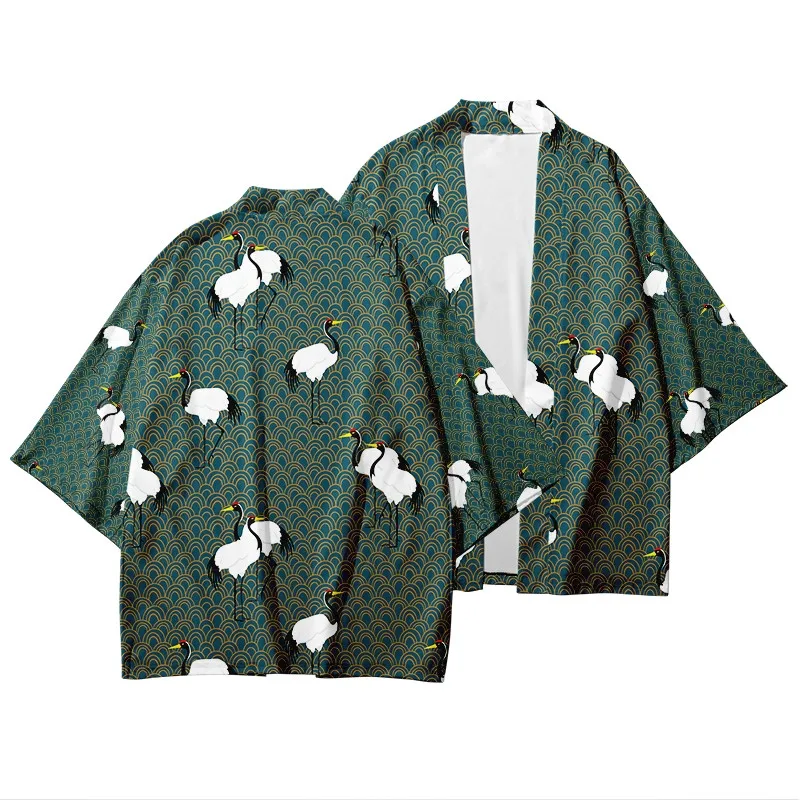 Crane Print Haori Kimono Harajuku Japanese Style Boys Girls Samurai Costume Yukata Asian Clothes Cardigan Kids Jacket 2-14 Y