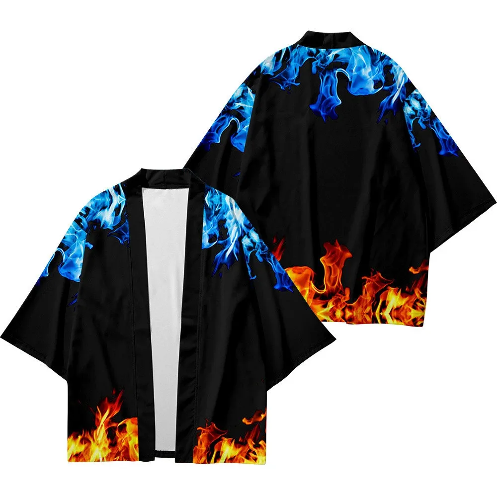 Colorful Flame Pattern Japanese Kimono Streetwear Beach Yukata Men Women Cardigan Cosplay Haori Harajuku Tops Robe Clothes