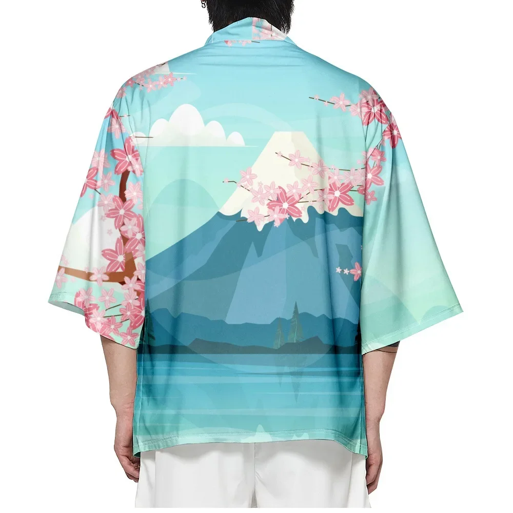 2024 Summer Men Loose Japanese Style 3/4 Sleeve Kimono Traditional Cardigan Haori Women Harajuku Streetwear Shirts kimono women