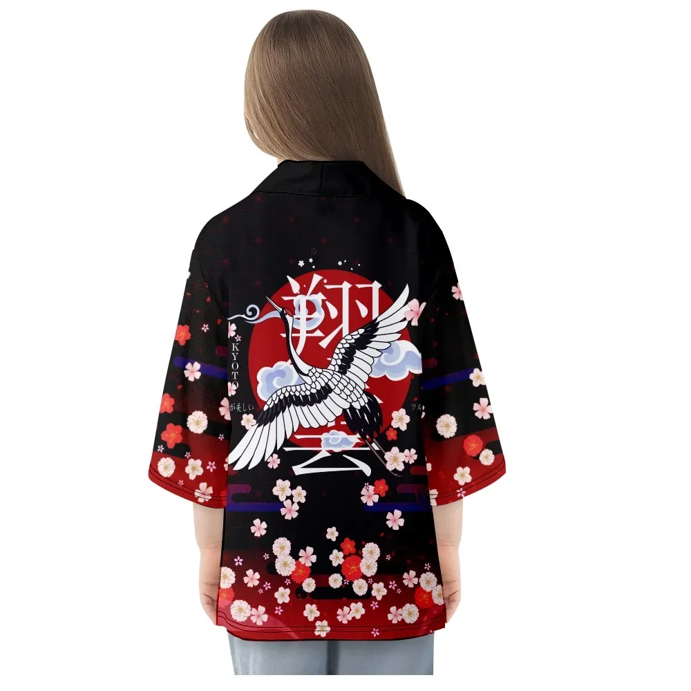 Crane Flower Printed Kimono Women Men Shirt Haori Fashion Traditional Clothing Summer Beach Cardigan Oversized Tops