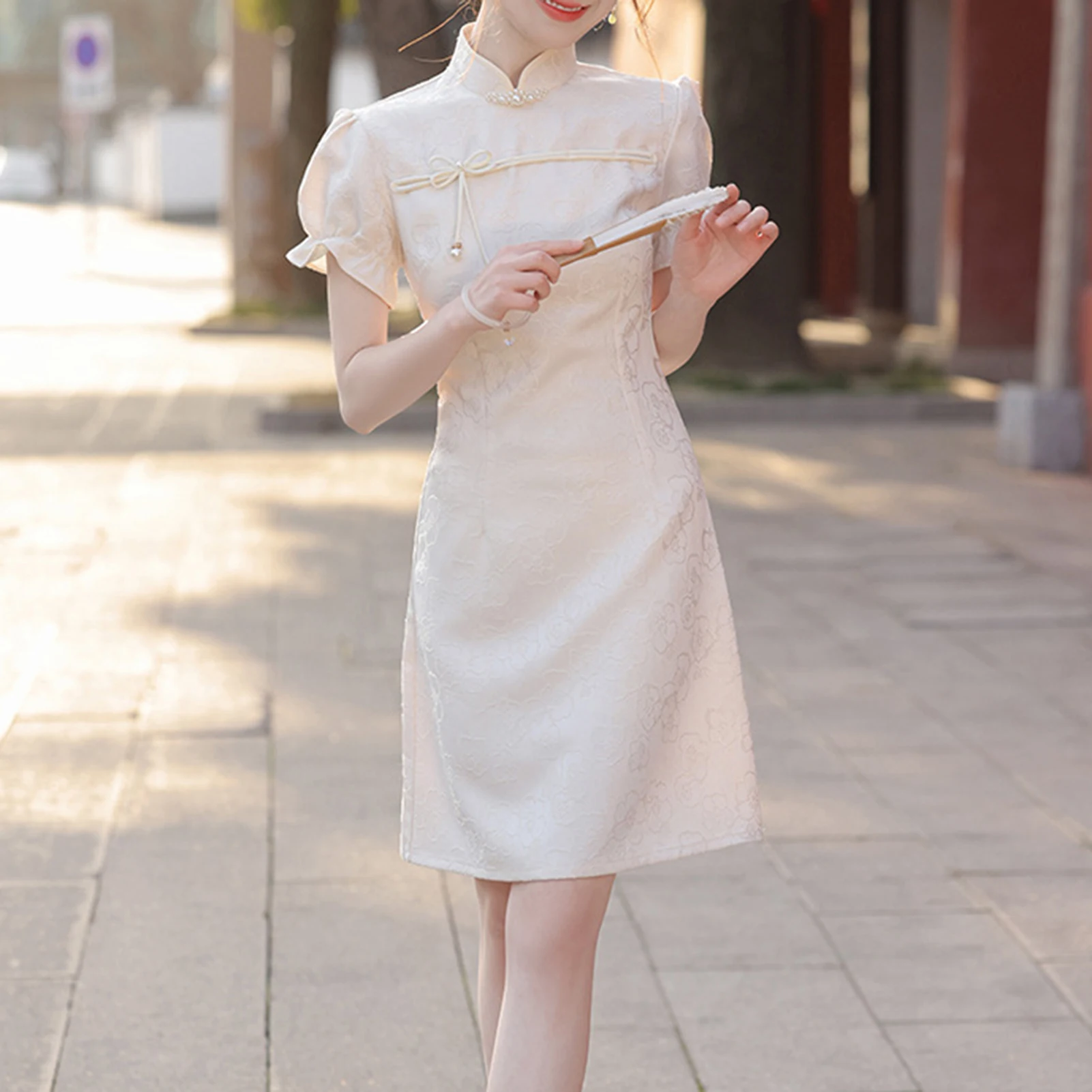 Summer Cheongsam Dress Flower Young Improved Cheongsam Mini Dress Chinese Style Formal Dresses