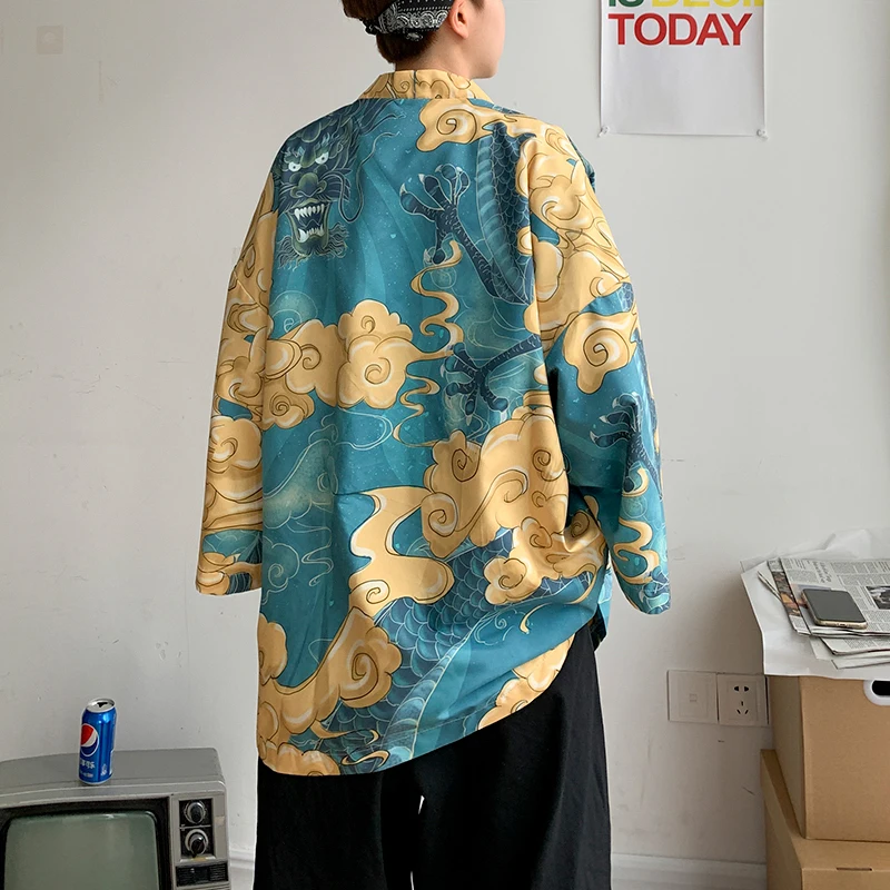 Japanese Original Man Animation Weaving Kimono Cardigan Yukata Male Kimono Jacket Men Japan Harajuku Streetwear Samurai Clothes