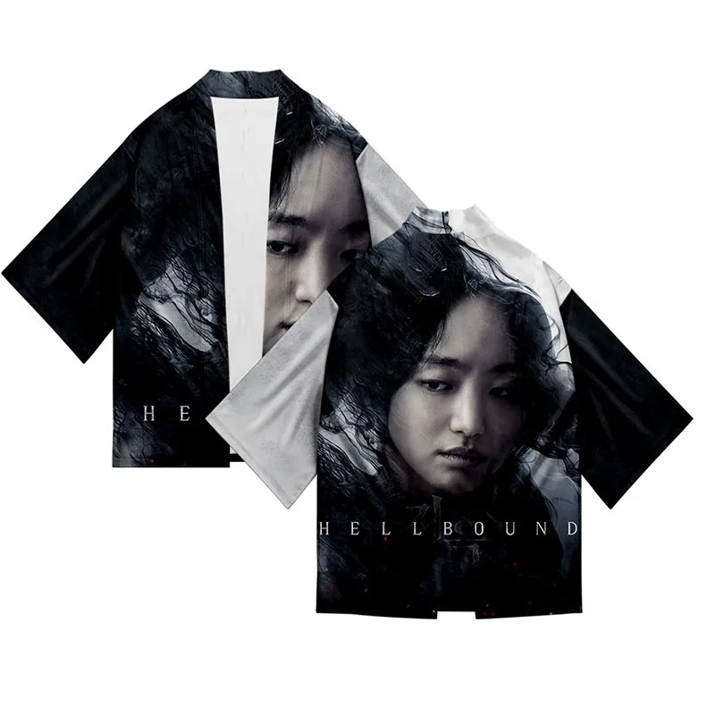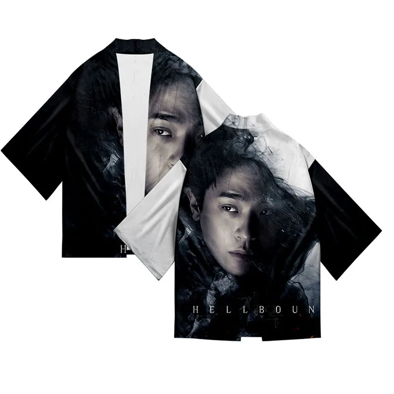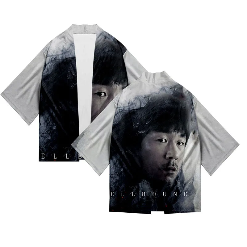 Hellbound Korean TV Series Kimono Shirt Cool 3d Print Fashion Cloak Men Women Seven Point Sleeve Tops Cardigan Jacket Streetwear