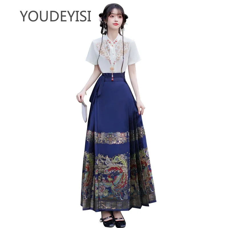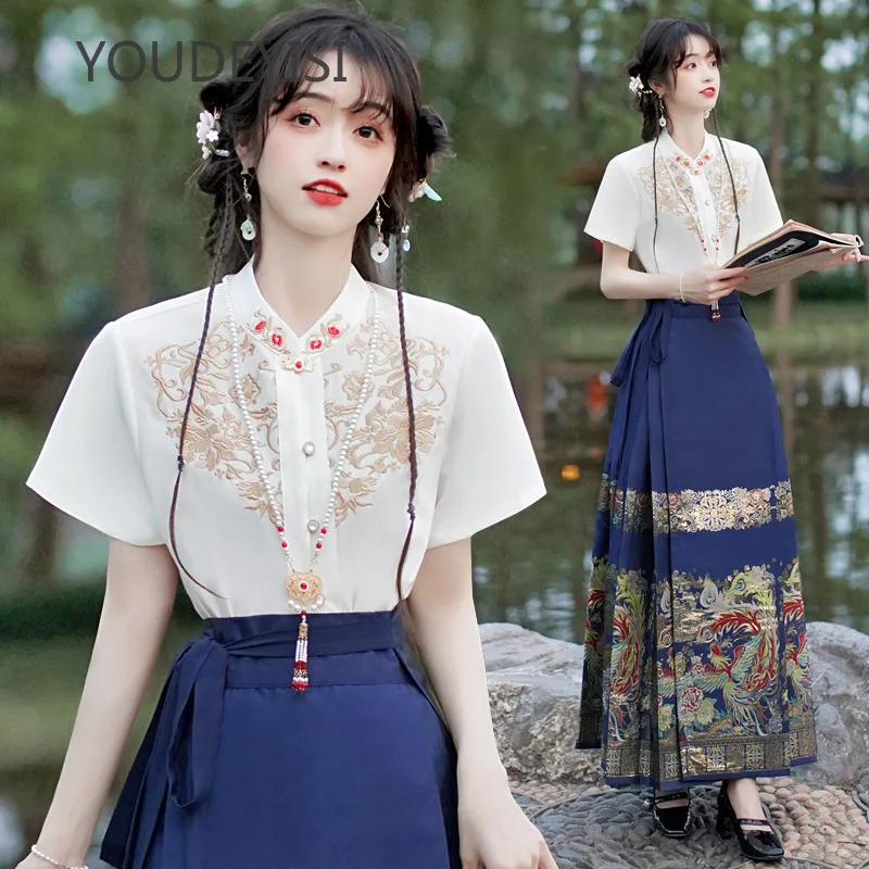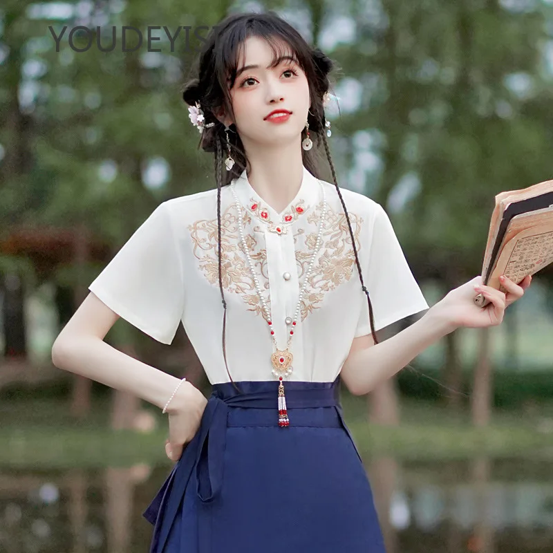 Name | YOUDEYISI New Chinese Style Hanfu Simple Embroidery Short Sleeve Top Improved One-piece Weaving Gold Horse Dress |