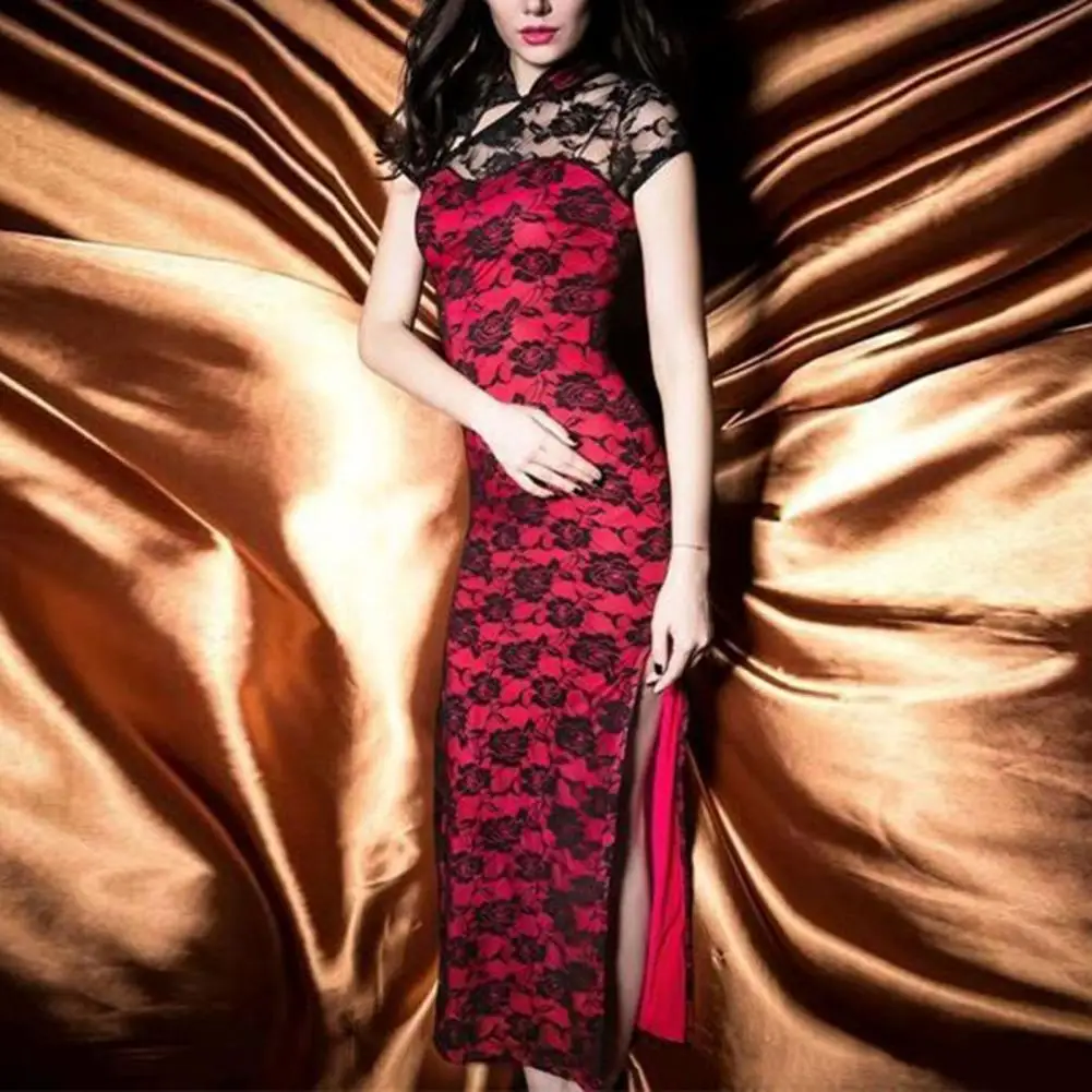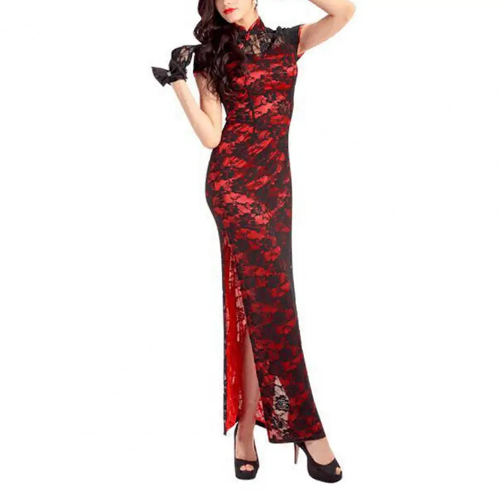 Name | Retro Style Cheongsam Elegant Chinese Style Lace Cheongsam Vintage Double-layered High Split Slim Fit Qipao Dress for Women Mesh |