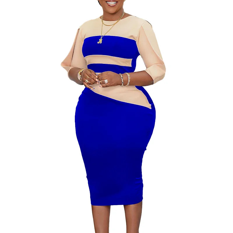 Name | Summer African Dresses for Women Elegant African Half Sleeve O-neck Polyester Black Blue Red Knee-length Dress African Clothes |