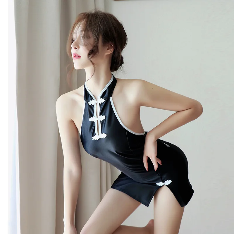 Chinese Traditional Retro Cheongsam Uniform Cosplay Sexy Lingerie Hot Erotic Split Mini Dresses Babydoll Party Nightclub Qipao