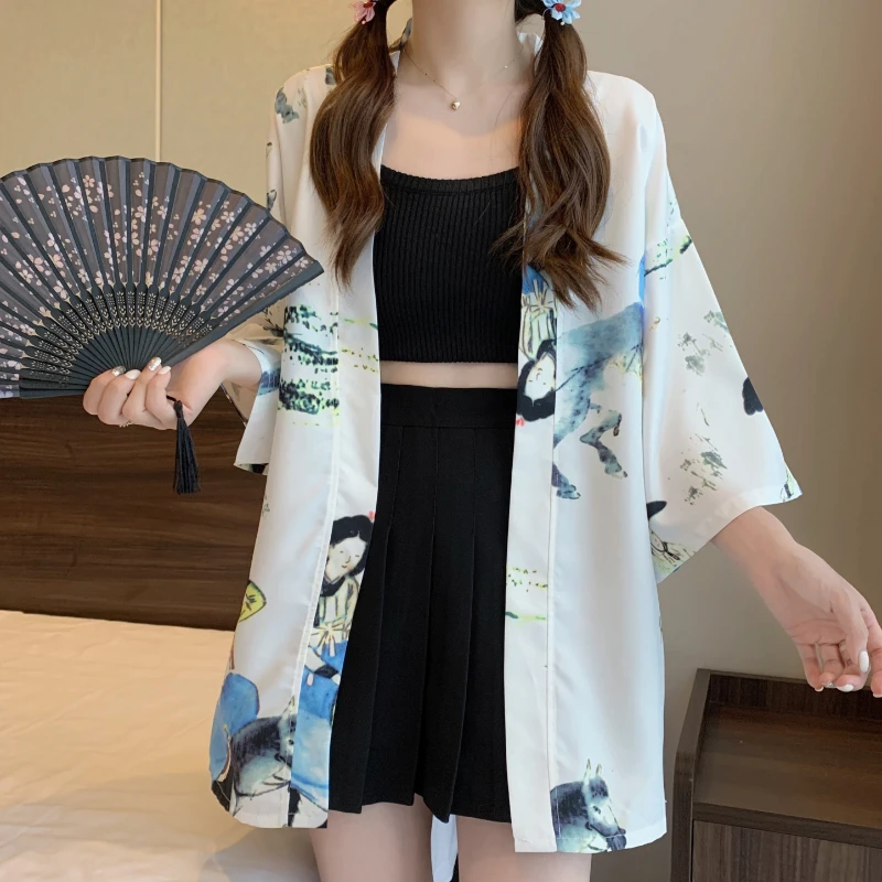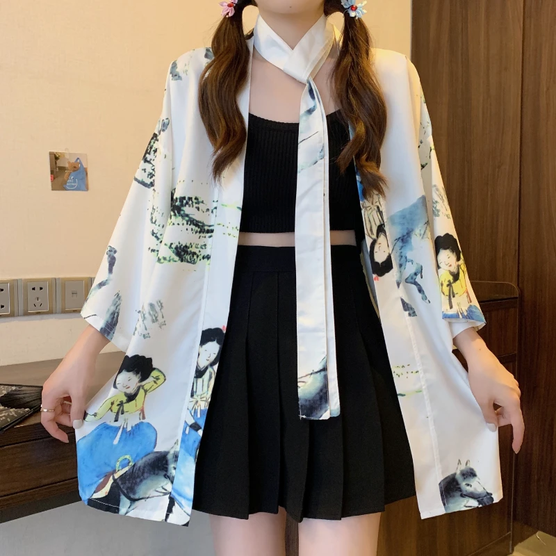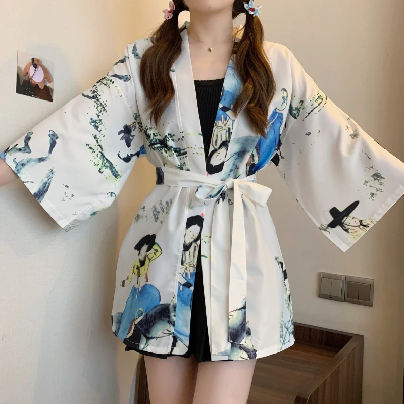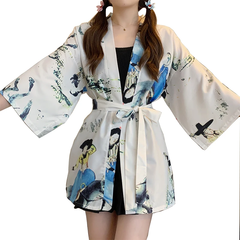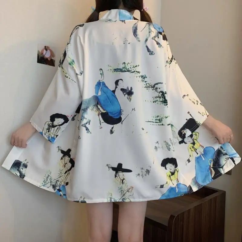 Women Harajuku Japanese Cardigan Kimono Male Obi Yukata Men's Haori Flower Print Coat Lady Samurai Haori Hombre Shirt Streetwear