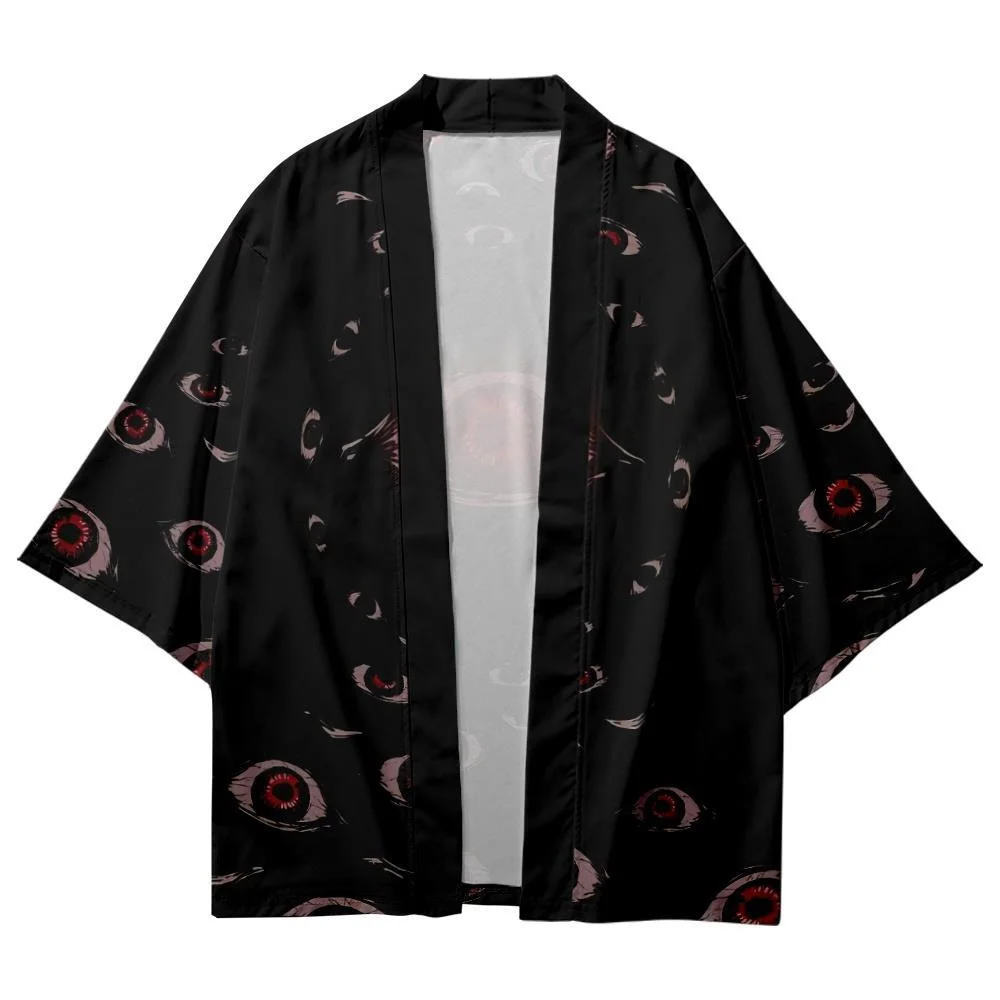 Design Eye Print Yukata Men Women Fashion Cardigan Blouse Haori Obi Asian Clothes Harajuku Japanese Cosplay Kimono