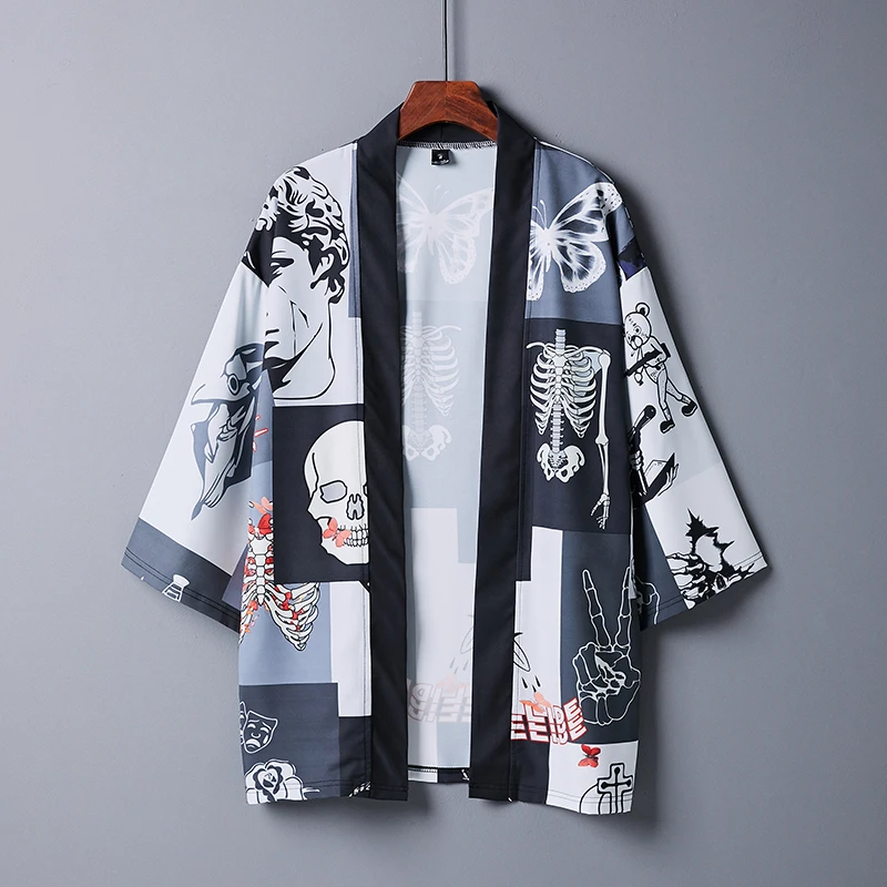Japanese Kimono Cardigan Vintage Streetwear Harajuku Yukata Men Summer Beach Kimono Asian Clothing Haori Samurai Cardigan