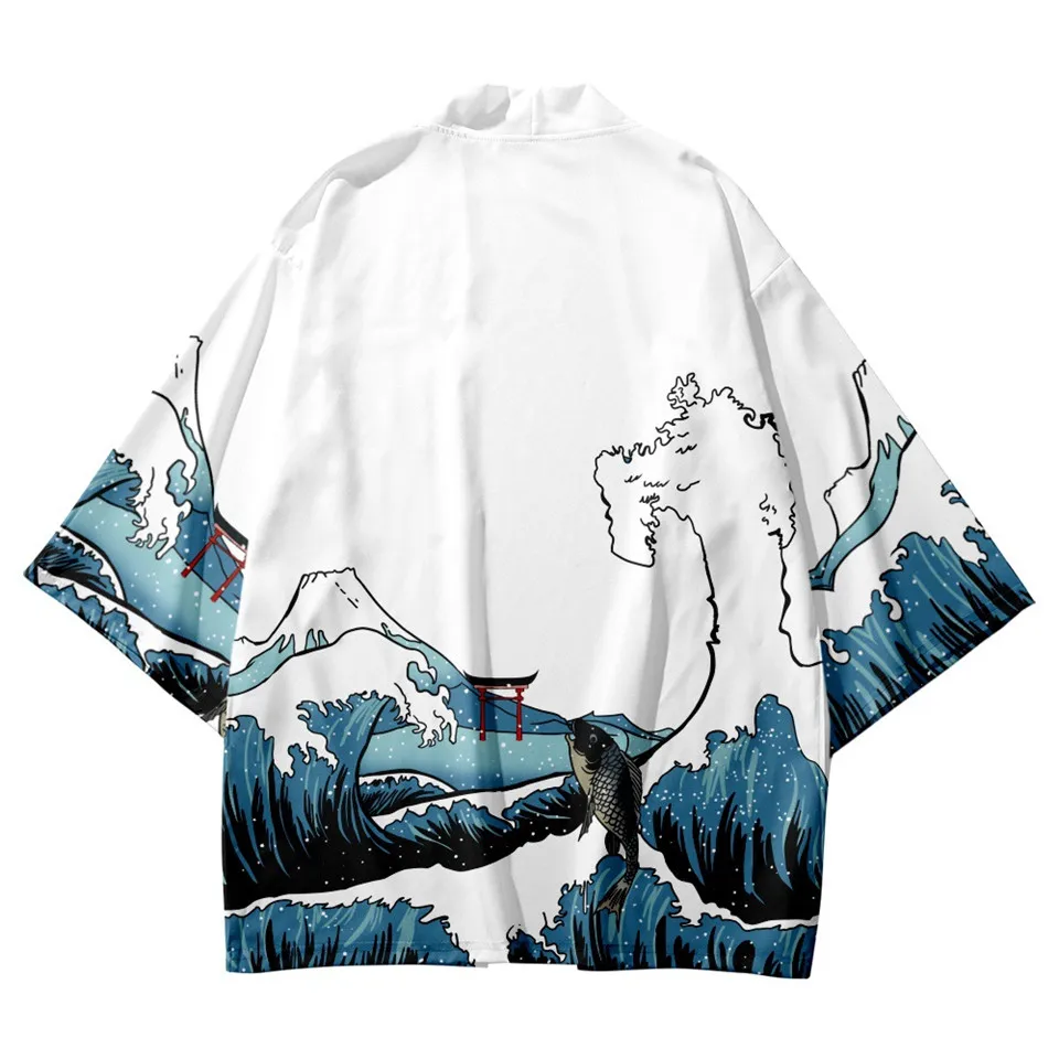 Kanagawa Wave Carp Dragon Kimono Women Men Haori Japanese Style Cardigan Boys Summer Loose Cardigan Girls Yukata