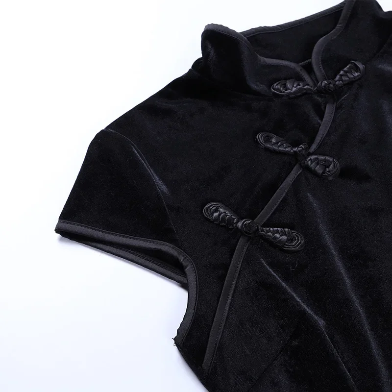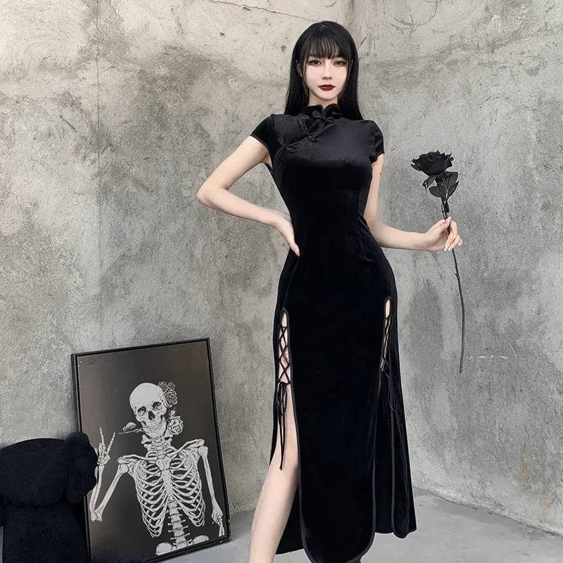 Name | Vintage Cheongsam Harajuku Black Bandage Chinese Cheongsam High Split Velvet Dress 2022 Qipao Gothic Women Carnival Dress Up |