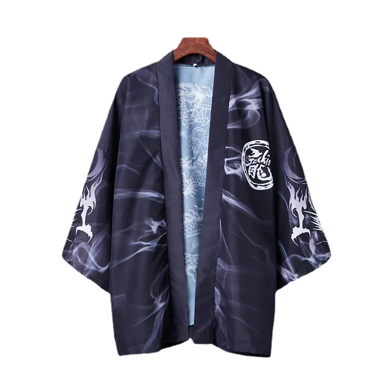 Japanese Kimono Cardigan Men Haori Yukata Male Samurai Costume Traditional Japan Clothing Black Harajuku Cardigan Cosplay Shirt