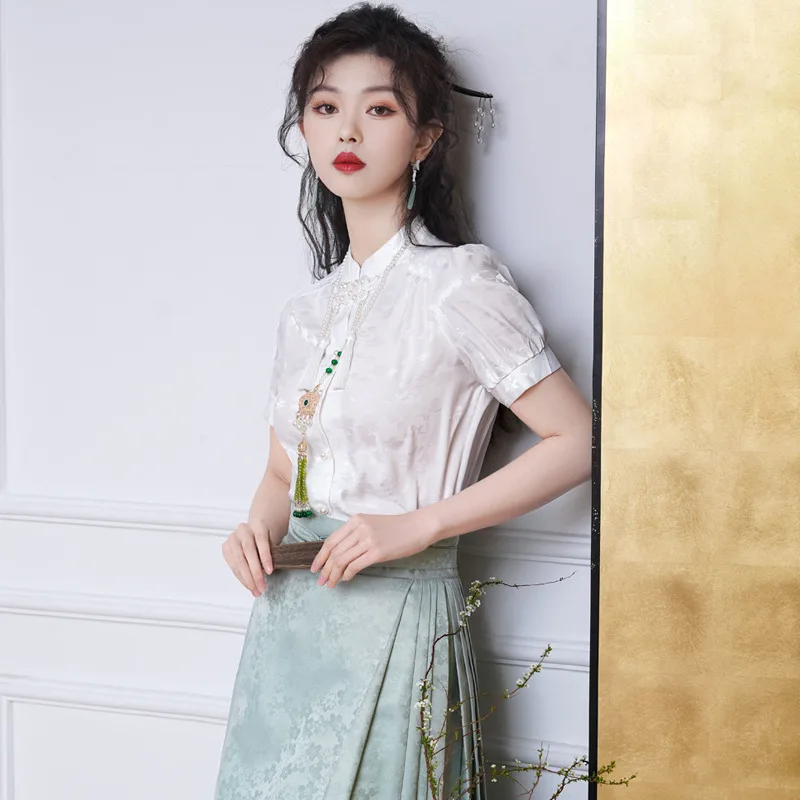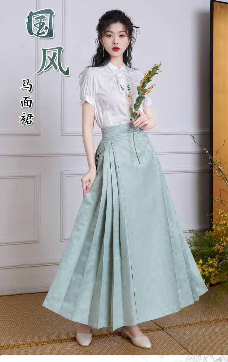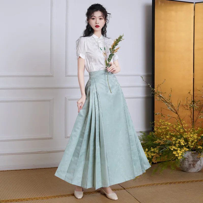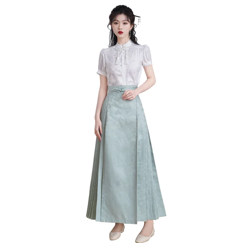 Name | YOUDEYISI New Chinese Style Simple Stand-up Collar Top Satin Jacquard Horse Dress Set Hanfu |