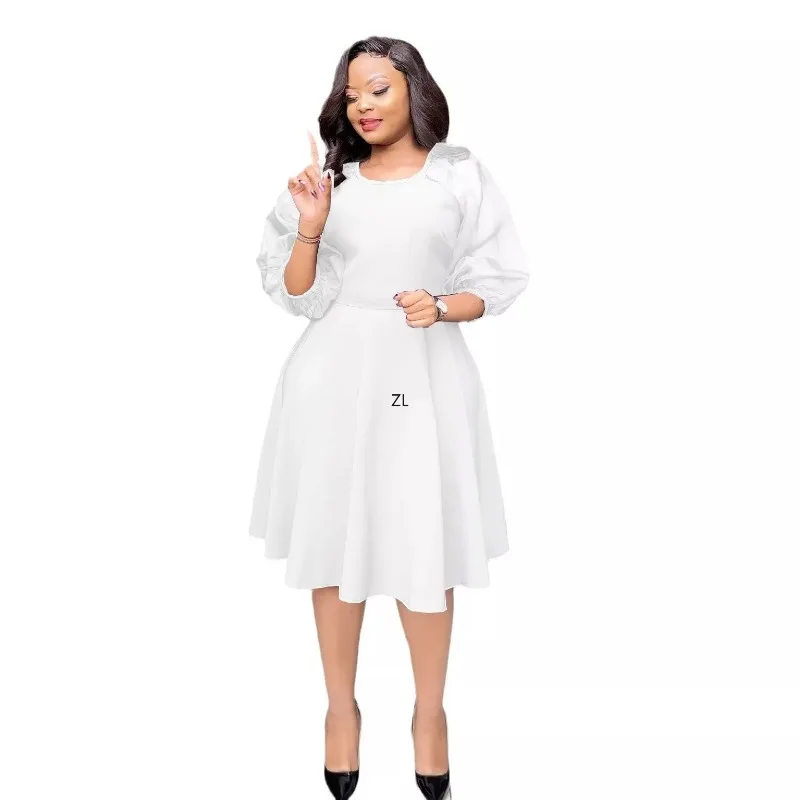 M-XL African Party Evening Dresses for Women Spring 2024 Africa 3/4 Sleeve O-neck Yellow Purple White Midi Dress Africa Clothing
