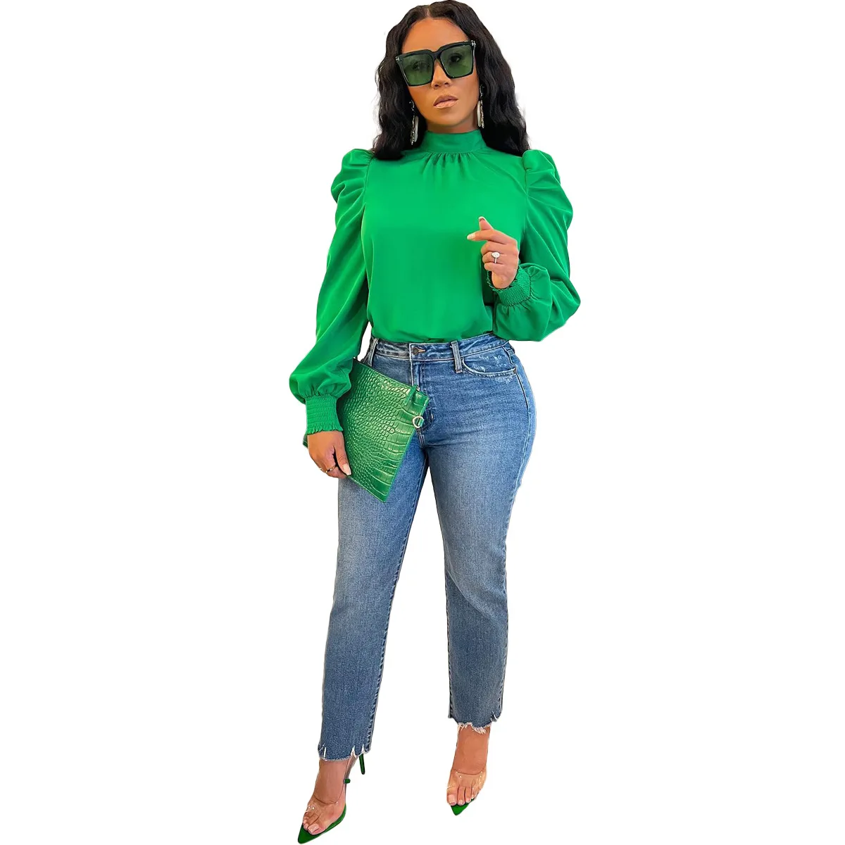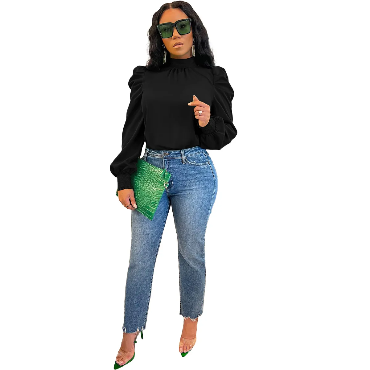 2023 Elegant Summer African Long Sleeve O-neck Polyester Solid Color Tops Dashiki African Clothing African Clothes For Women