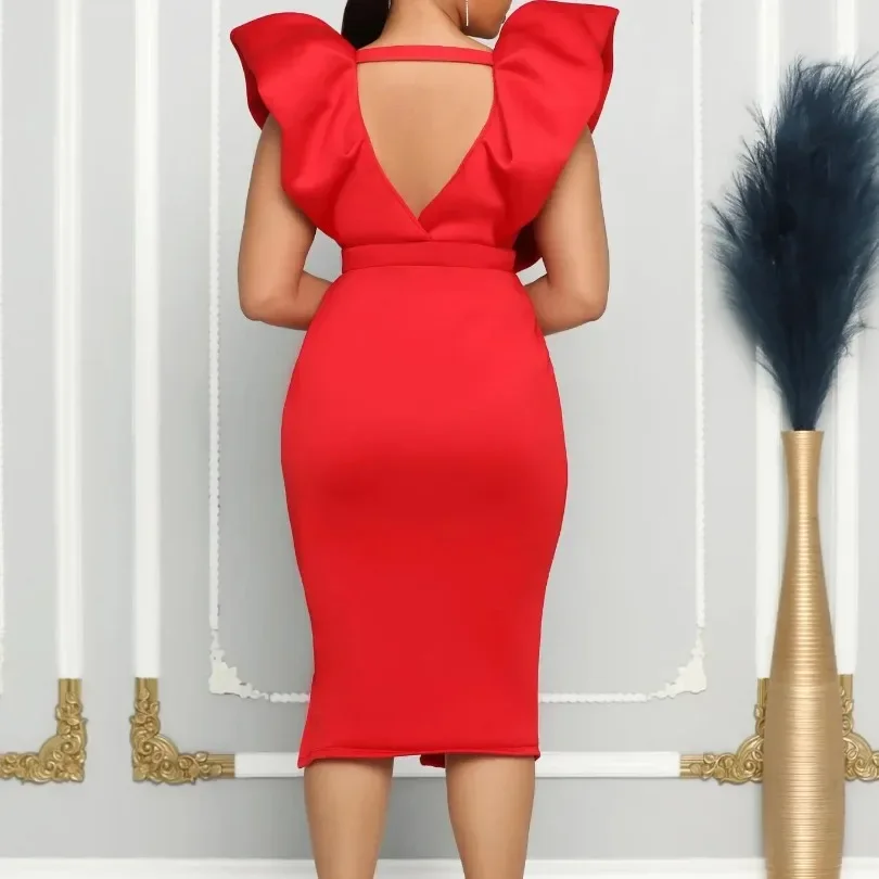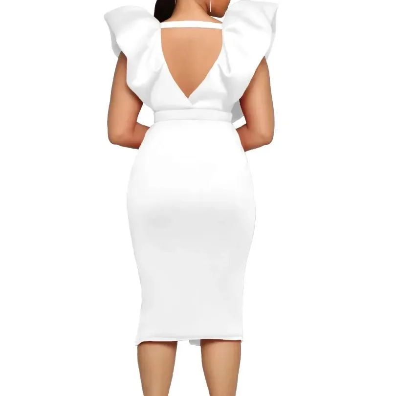 Name | Summer Elegant African Women V-neck Short Sleeve Polyester White Red Knee-length Party Evening Dress African Dresses for Women |