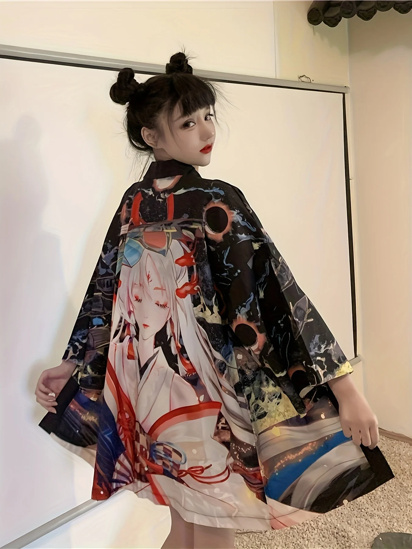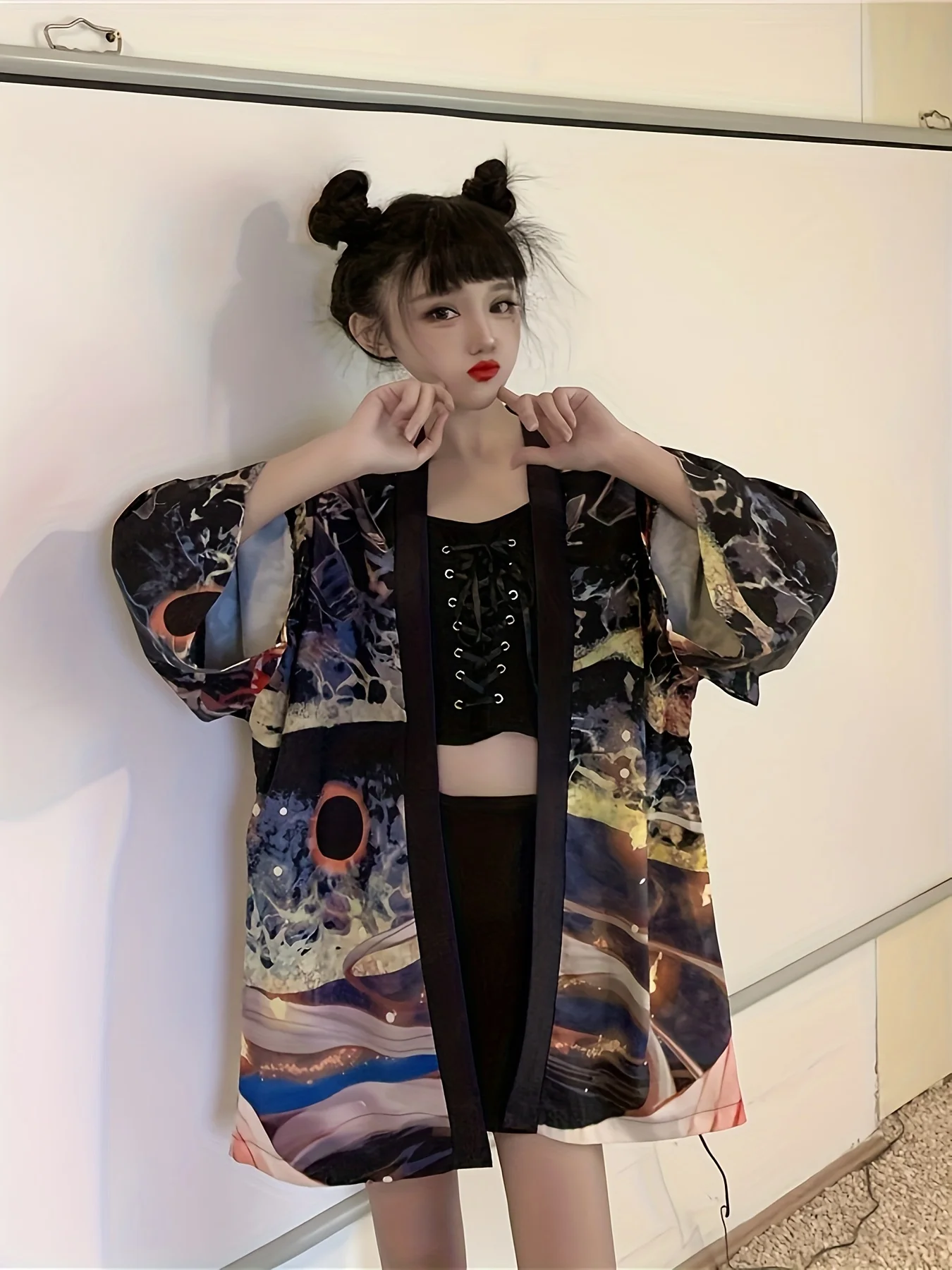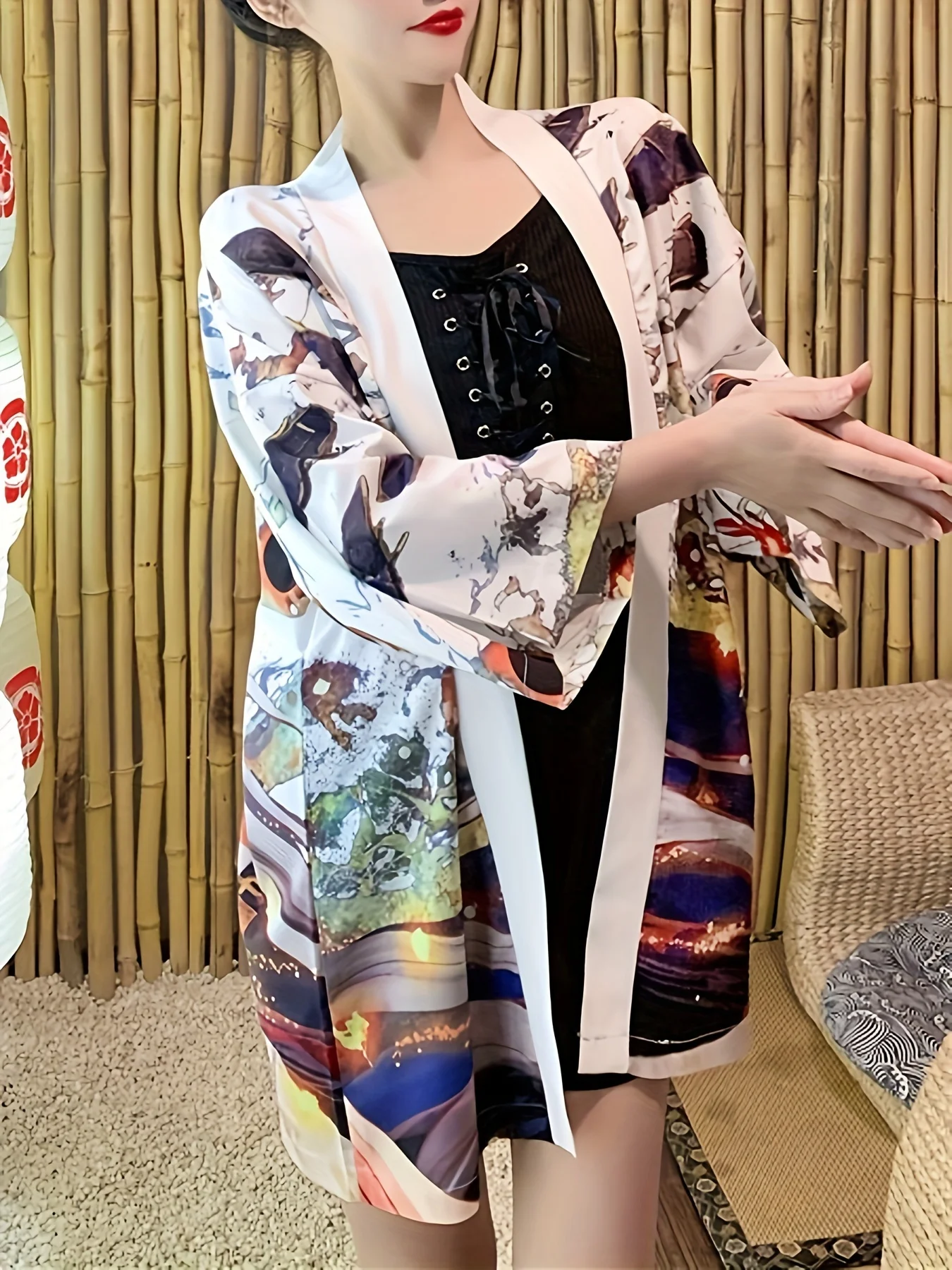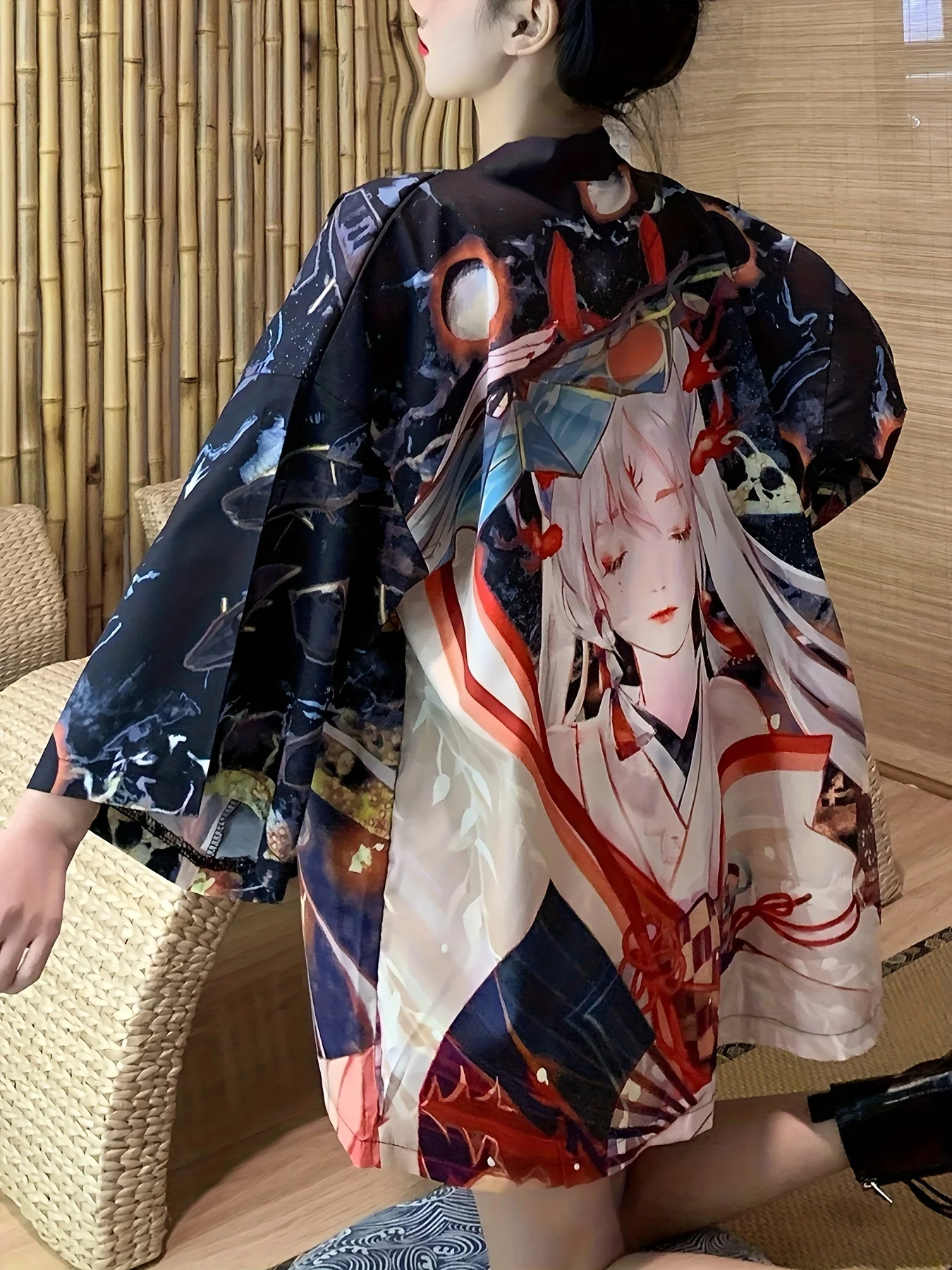 Haori thin improved Japanese kimono cape picture Loose Japanese trend seven-point sleeve yukata Cardigan thin coat Summer Korean