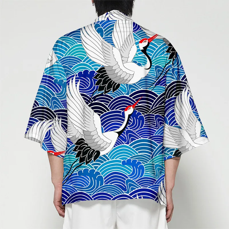 Samurai Crane Japanese Kimono shirt Cardigan Men Summer Streetwear Batwing Sleeve Funny Hip Hop 3D Kimono