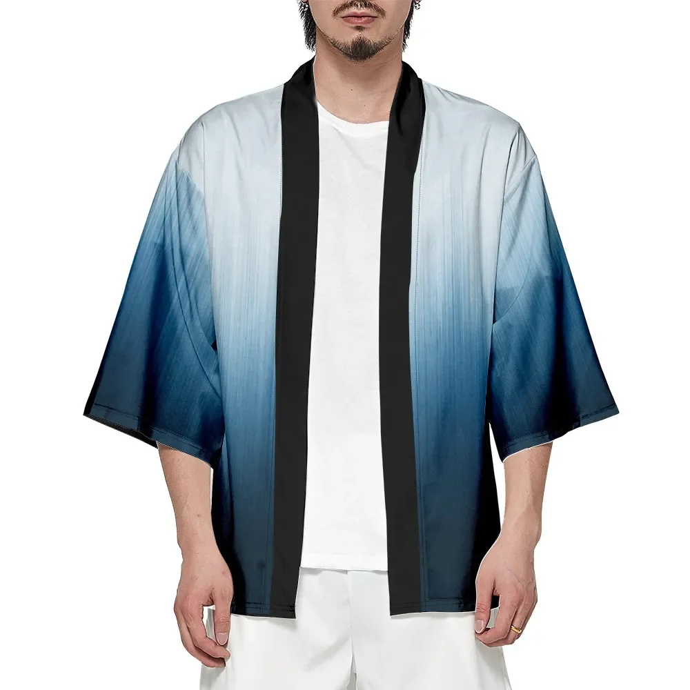Fashion Gradient Color Print Yukata Japanese Casual Cardigan Haori Men Traditional Asian Clothing Shirts Oversized Loose Kimono