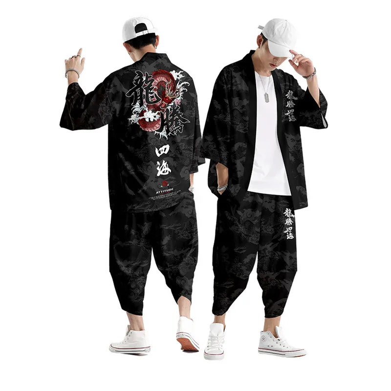 Name | Japanese Traditional Clothing Dragon Print Kimono Pants Men Retro Yukata Asian Fashion Tang Suit Harajuku Hanfu Yukata Jacket |