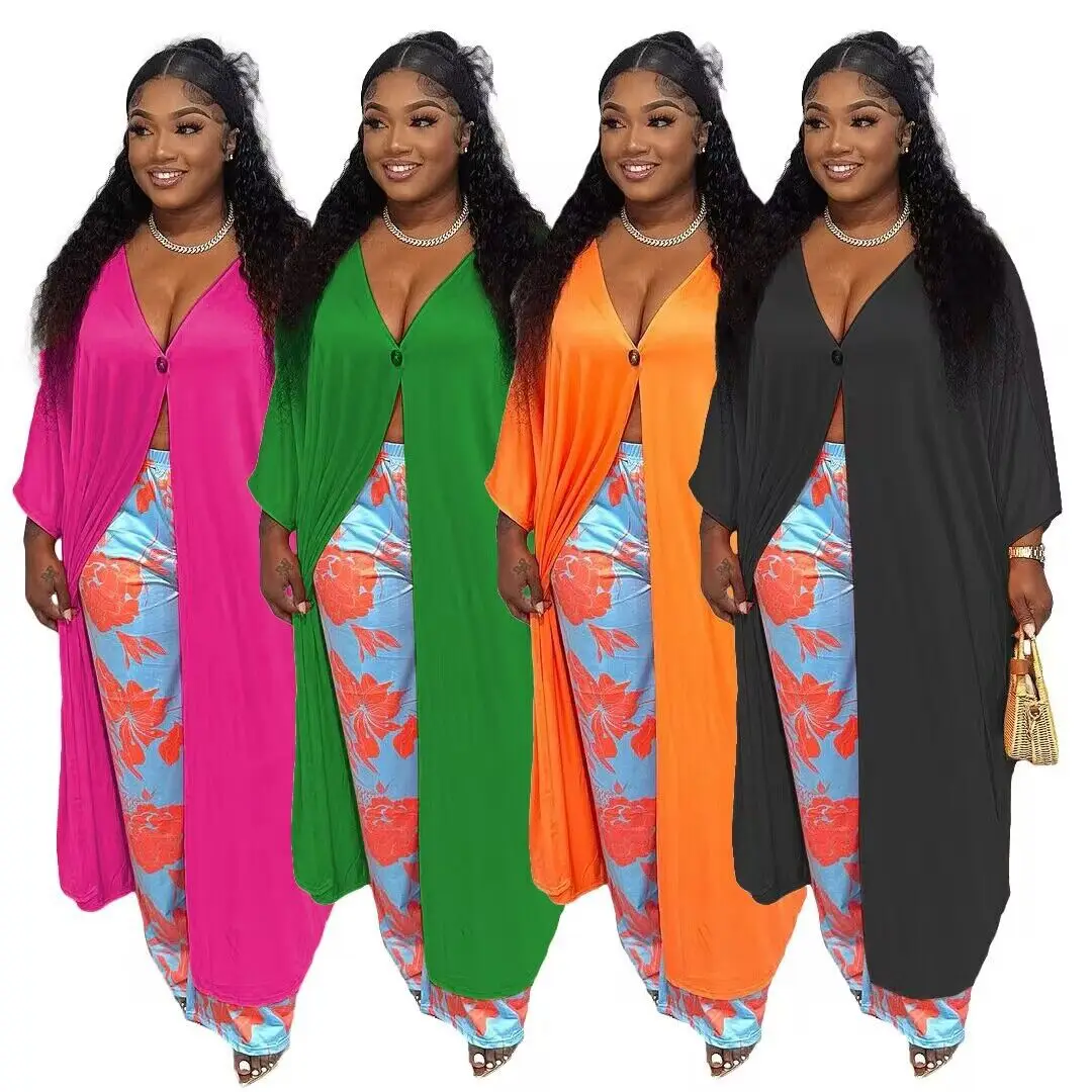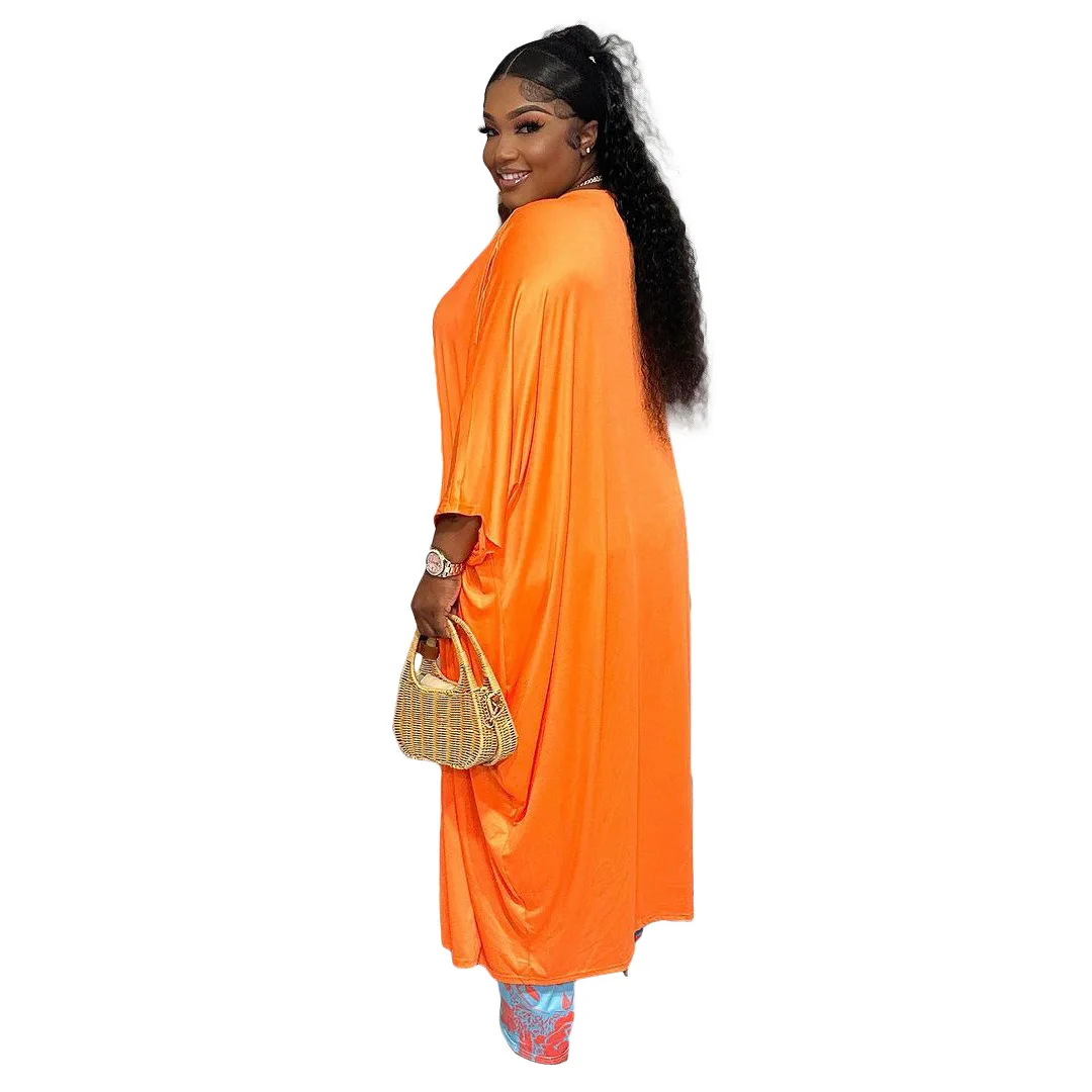 African Dresses for Women Fashion African V-neck 3/4 Sleeve Black Green Orange Long Shirt Maxi Dress African Clothes Women
