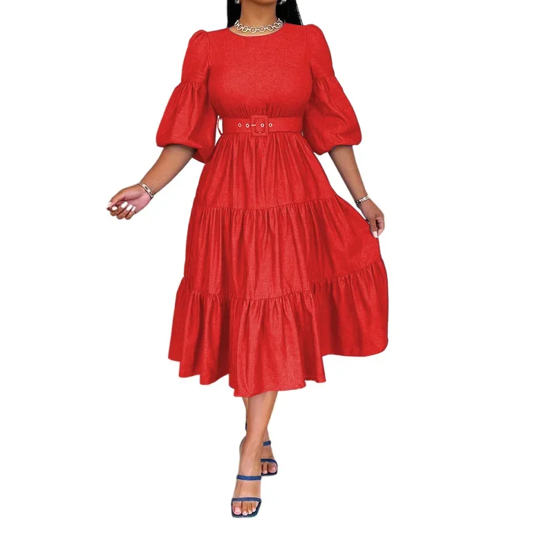 Name | Elegant African Dresses for Women 2023 Summer Autumn African O-neck Red Blue Black Polyester Party Dress African Clothes |