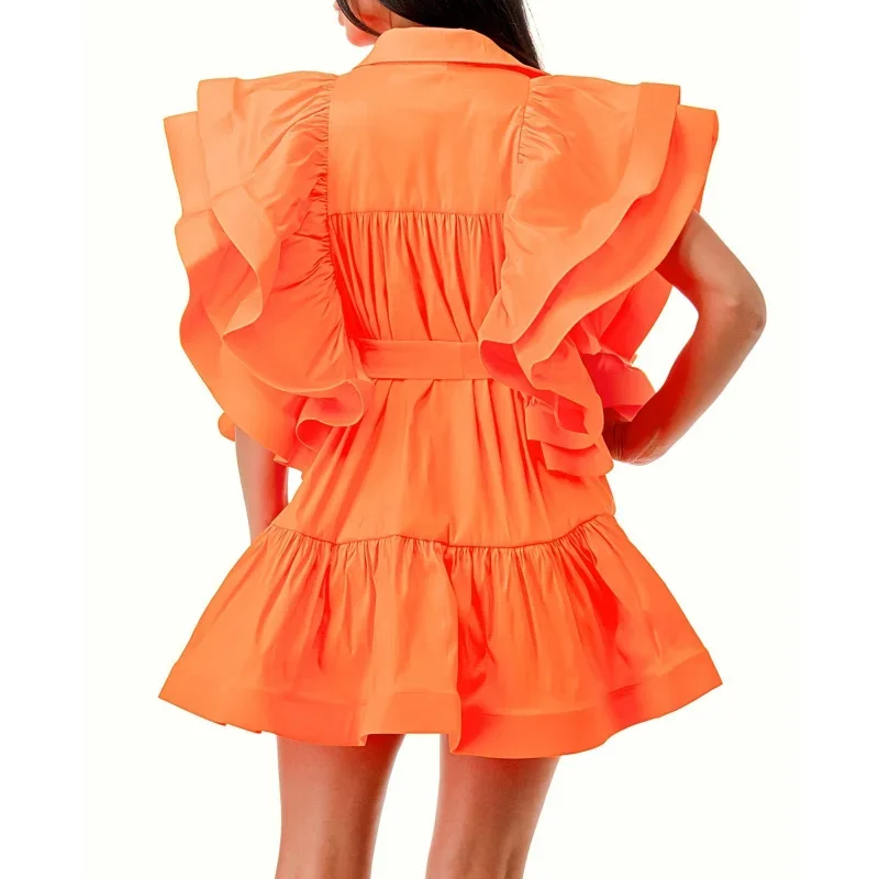 Summer African Dresses for Women African Short Sleeve V-neck Orange White Pink Green Black Party Mini Dress African Clothes