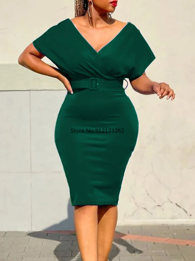 African Dresses for Women 2024 Spring Summer Sexy Belt High Waist Bandage Elegant Bodycon Midi Dress African Clothes S-3XL