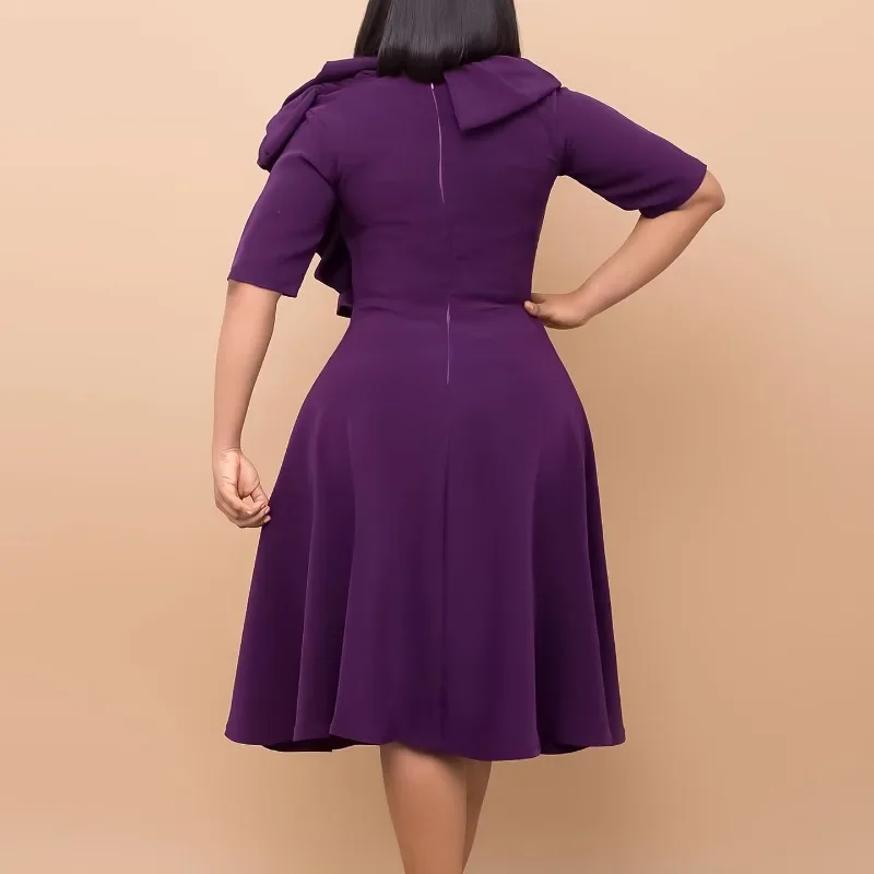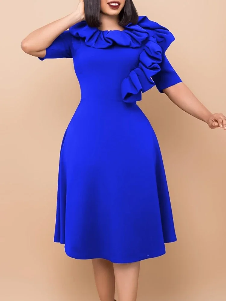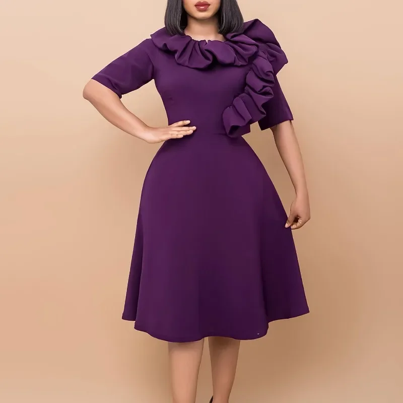 Women Ruffle Midi Dresses A Line Pleated Elegant Vintage O Neck Short Sleeve Classy Party Evening Prom Large Size Autumn Stylish