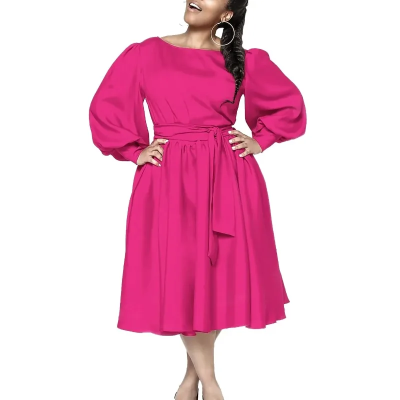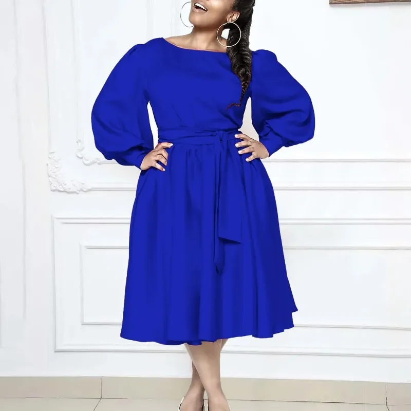 Spring Fashion African Long Sleeve O-neck Blue Yellow Rose Red Polyester Party Evening Midi Dress Dashiki Africa Clothing