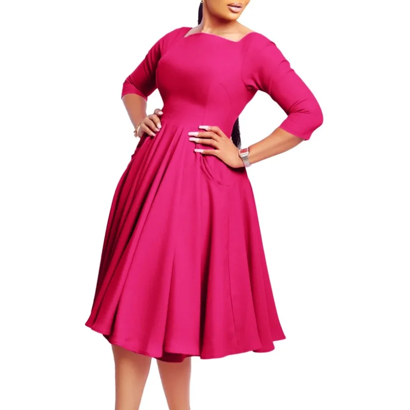 African Dresses for Women Spring 2024 Elegant Africa 3/4 Sleeve Polyester Black Blue Rose Red Midi Dress Dashiki Africa Clothing