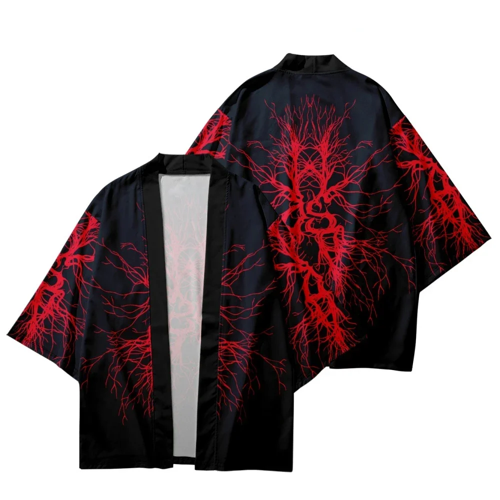 Traditional Streetwear Red Tree Roots Print Kimono Men Japanese Beach Yukata Women Casual Cardigan Cosplay Haori Asia Clothing