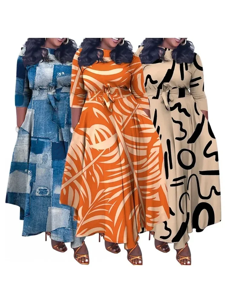 African Dresses For Women Plus Size Polyester New Vetement Femme Dashiki Abaya Print Maxi Dress Africa Clothes Dashiki Ankara