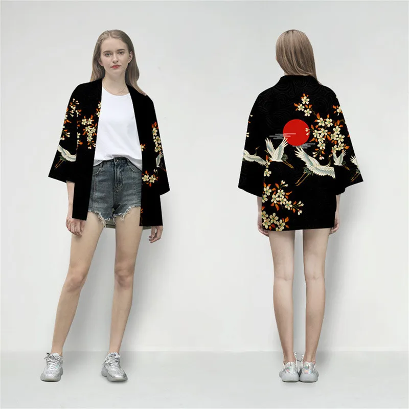 Street Wear Samurai Asian Clothing Japanese Style Sleeve Skull Print Traditional Kimono Women Yukata Cardigan Cosplay Haori
