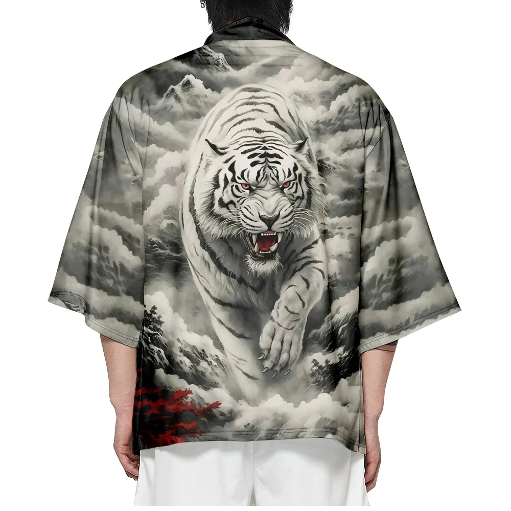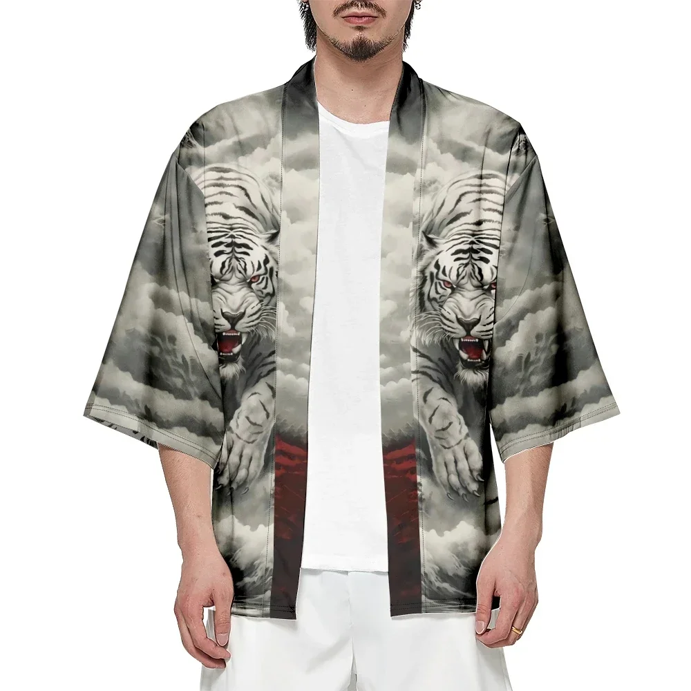 Fashion Tiger Print Haori Shirts Streetwear Harajuku Men Women Traditional Cardigan Tops Beach Yukata Japanese Kimono Plus Size