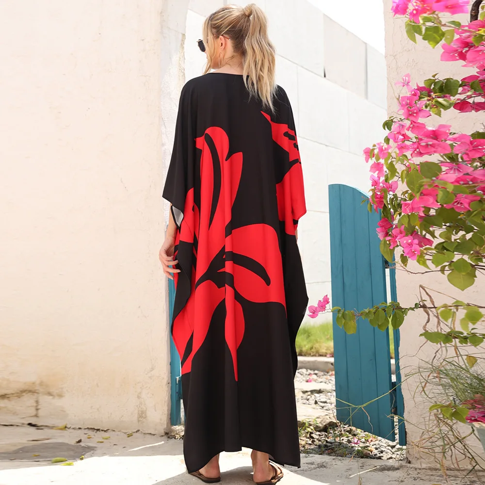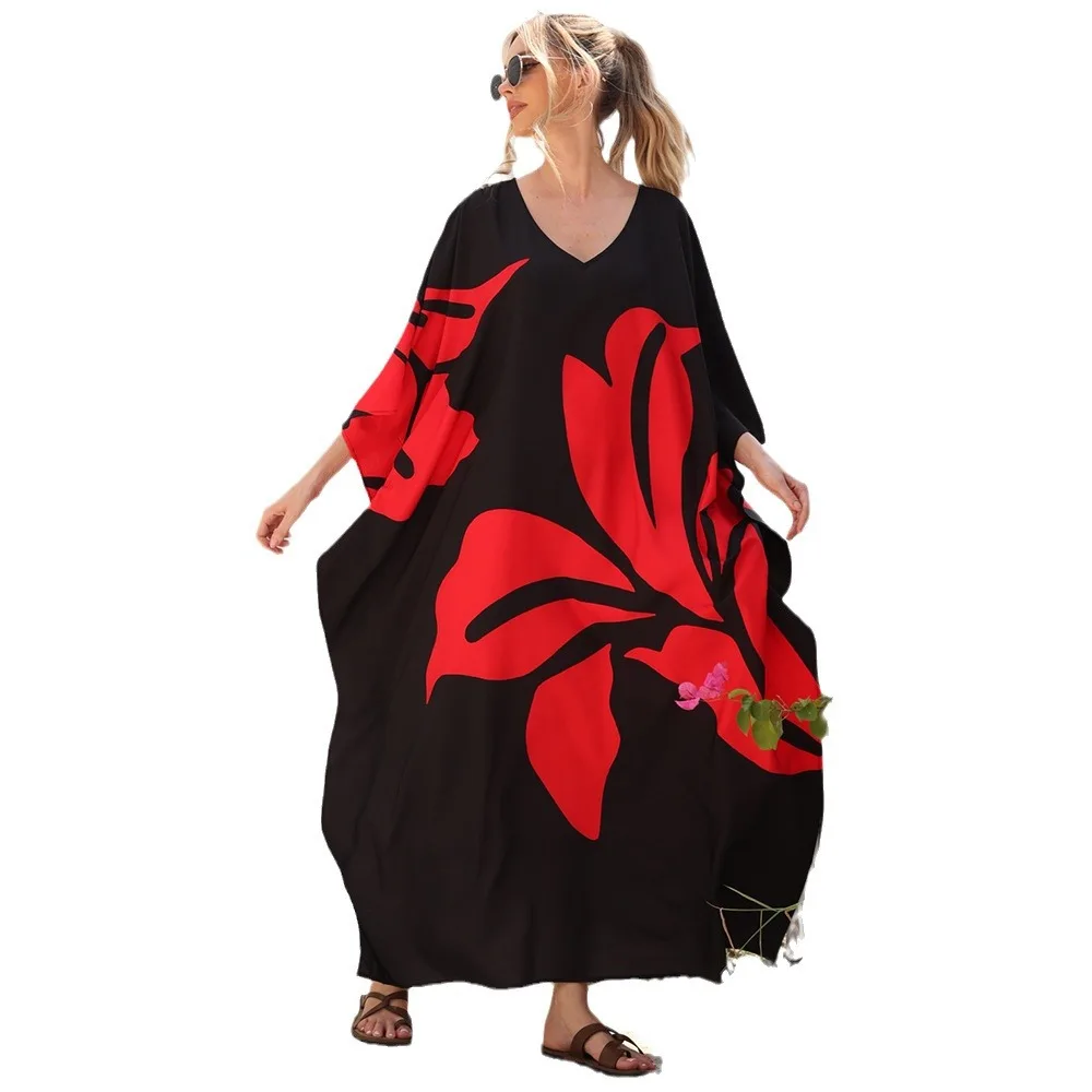 Name | Summer 2023 African Dresses for Women Sexy African Long Sleeve V-neck Polyester Print Long Dress African Clothing Kimono Women |