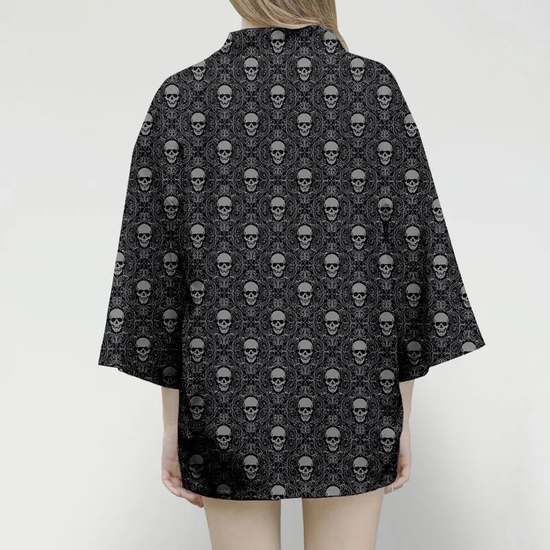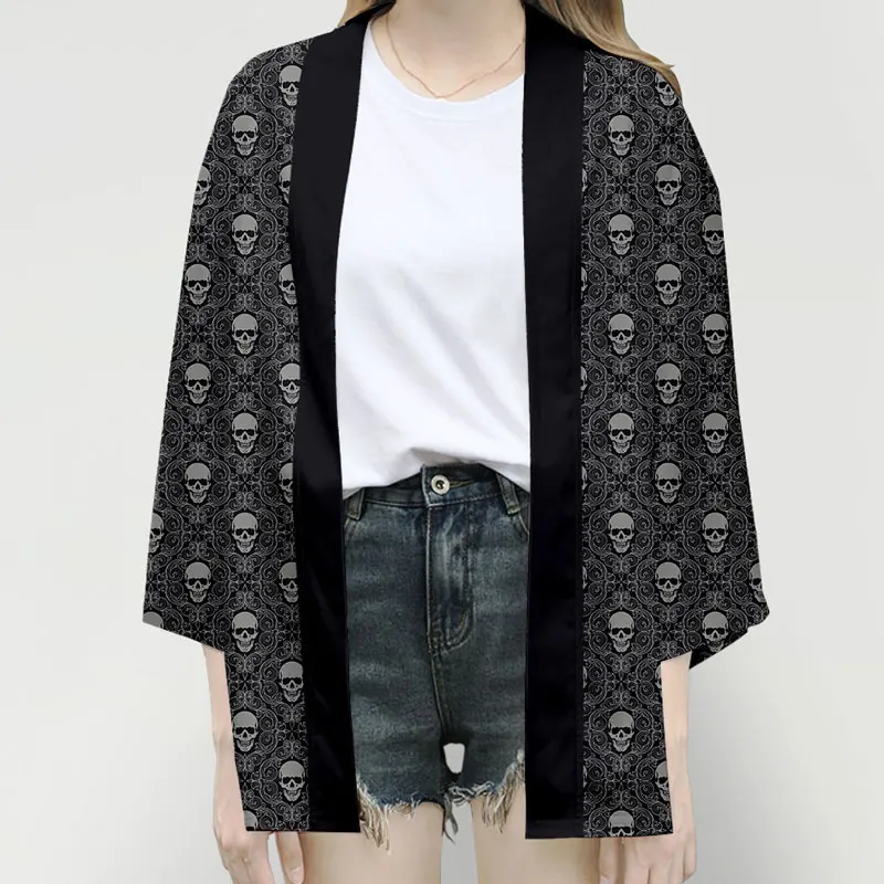 Japanese traditional clothing kimono shirt men/women Japanese harajuku Horror Skull mens chiffon shirt Cosplay kimono Cardigan