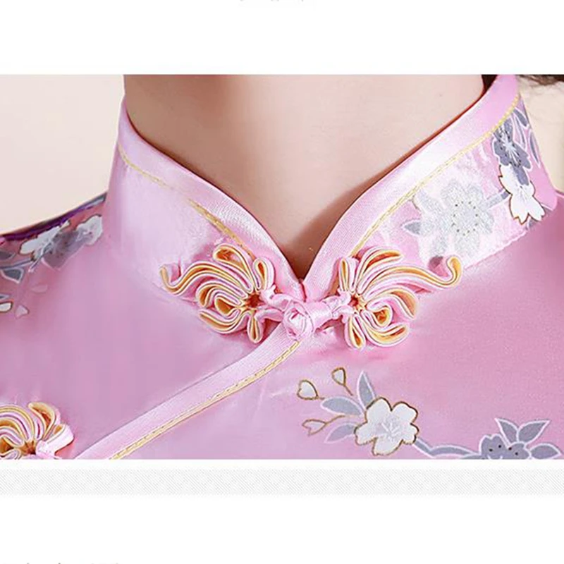 Name | Formal Gowns Women Short Slim Cheongsam Sexy High Split Chinese Traditional Dress Flower Qipao Vestidos peacock pink |