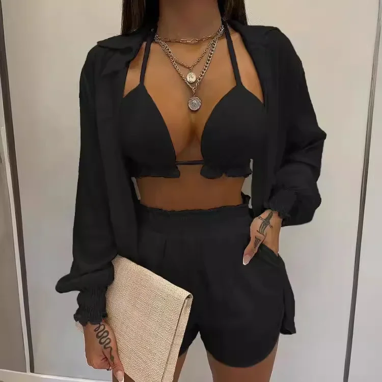 Summer Sexy African Long Sleeve Polyester 3 Piece Coat Bra Pant Matching Sets Dashiki African Clothing African Clothes for Women