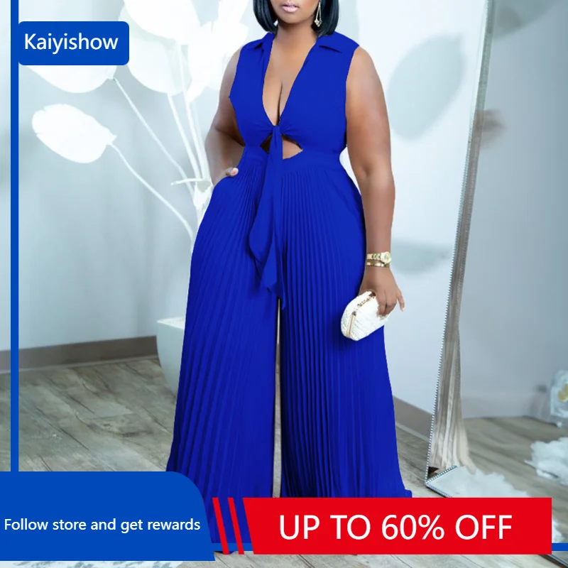 Jumpsuit Women S-3XL Sexy Party Club Romper Ruffles Halter Sleeveless Solid Wide Leg Office Lady Wholesale Dropshipping