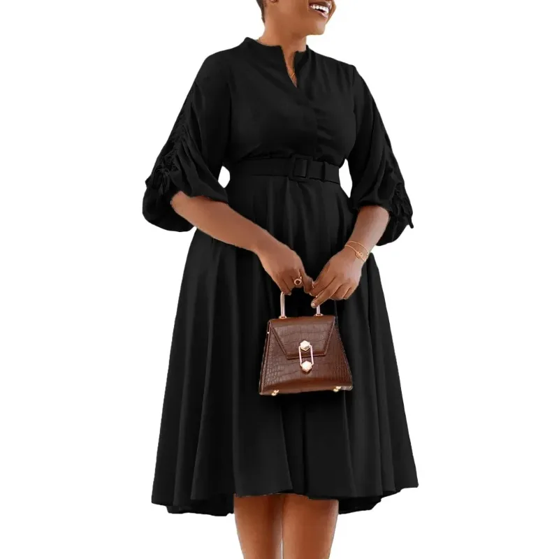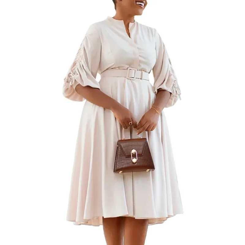 2024 African Dresses for Women Polyester 3/4 Sleeve Muslim Fashion Abayas Dashiki Robe Party Midi Dress African Clothing