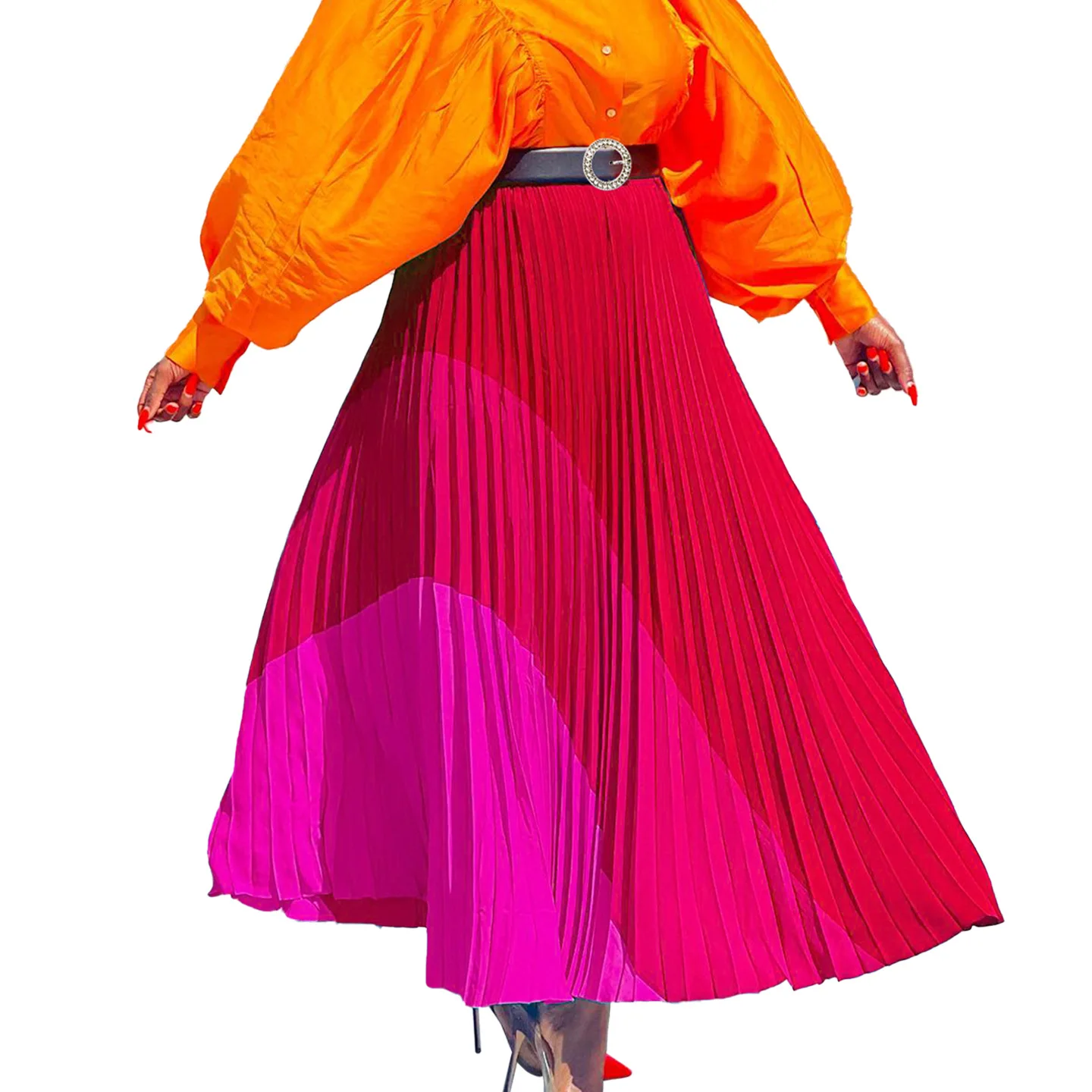 Autumn Elegant 2023 African Women High Waist Polyester Maxi Skirts African Clothes for Women With Belt Dashiki African Clothing