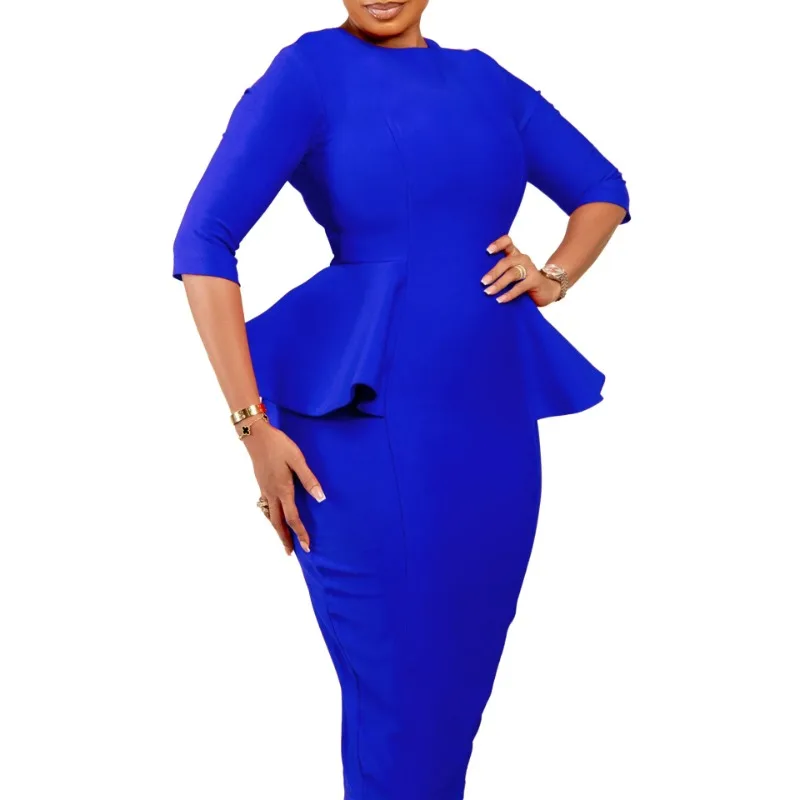 2024 Spring African Dresses for Women Elegant African 3/4 Sleeve Polyester Yellow Blue Red Bodycon Dress Dashiki Africa Clothing