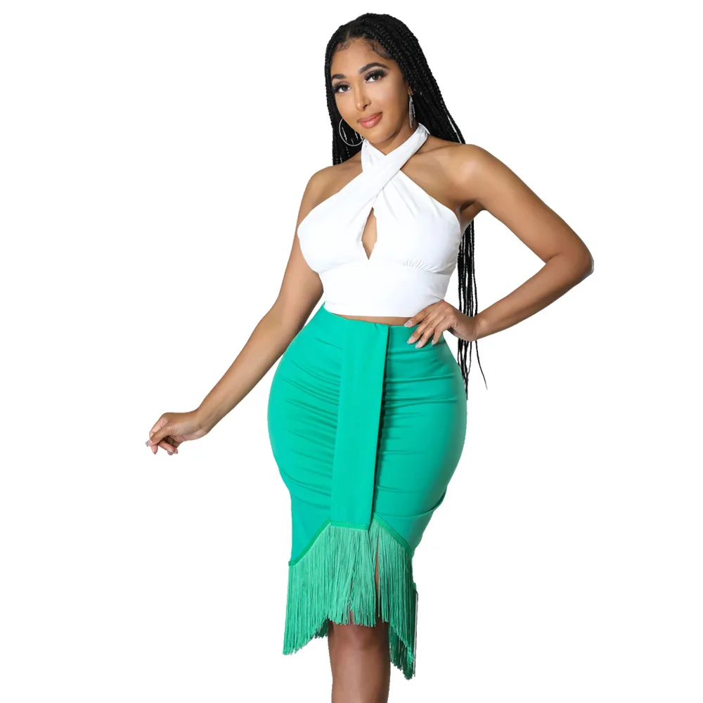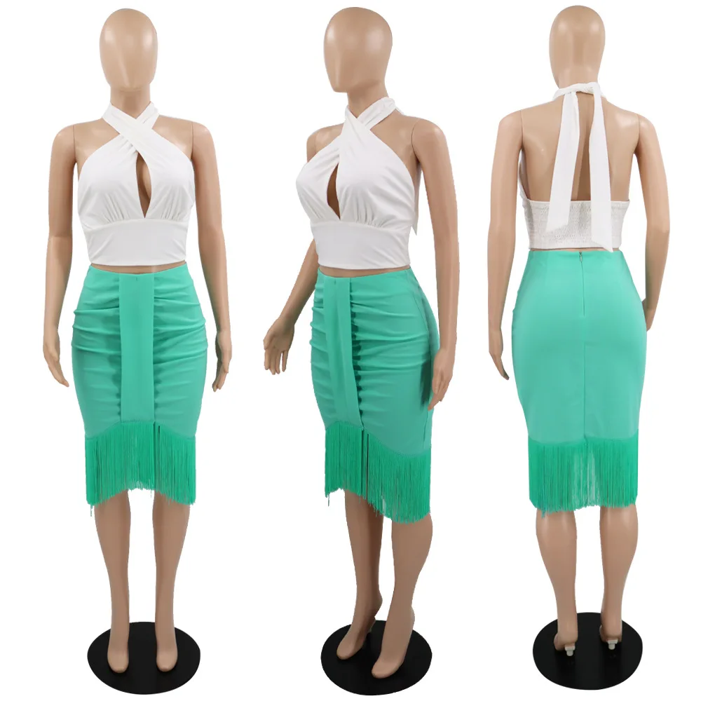 Name | African Clothing 2023 Summer Sexy African Sleeveless Polyester 2 Pieces Top Skirt Matching Sets African Clothes for Women |