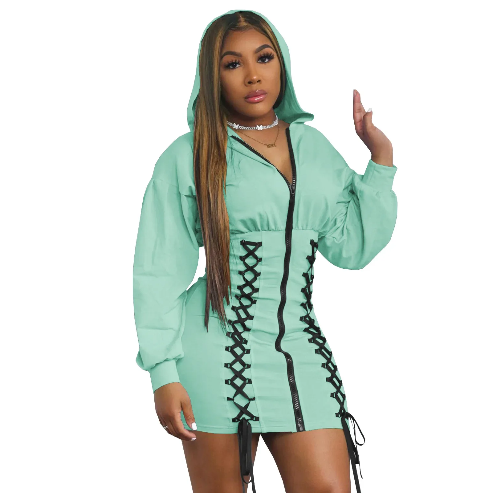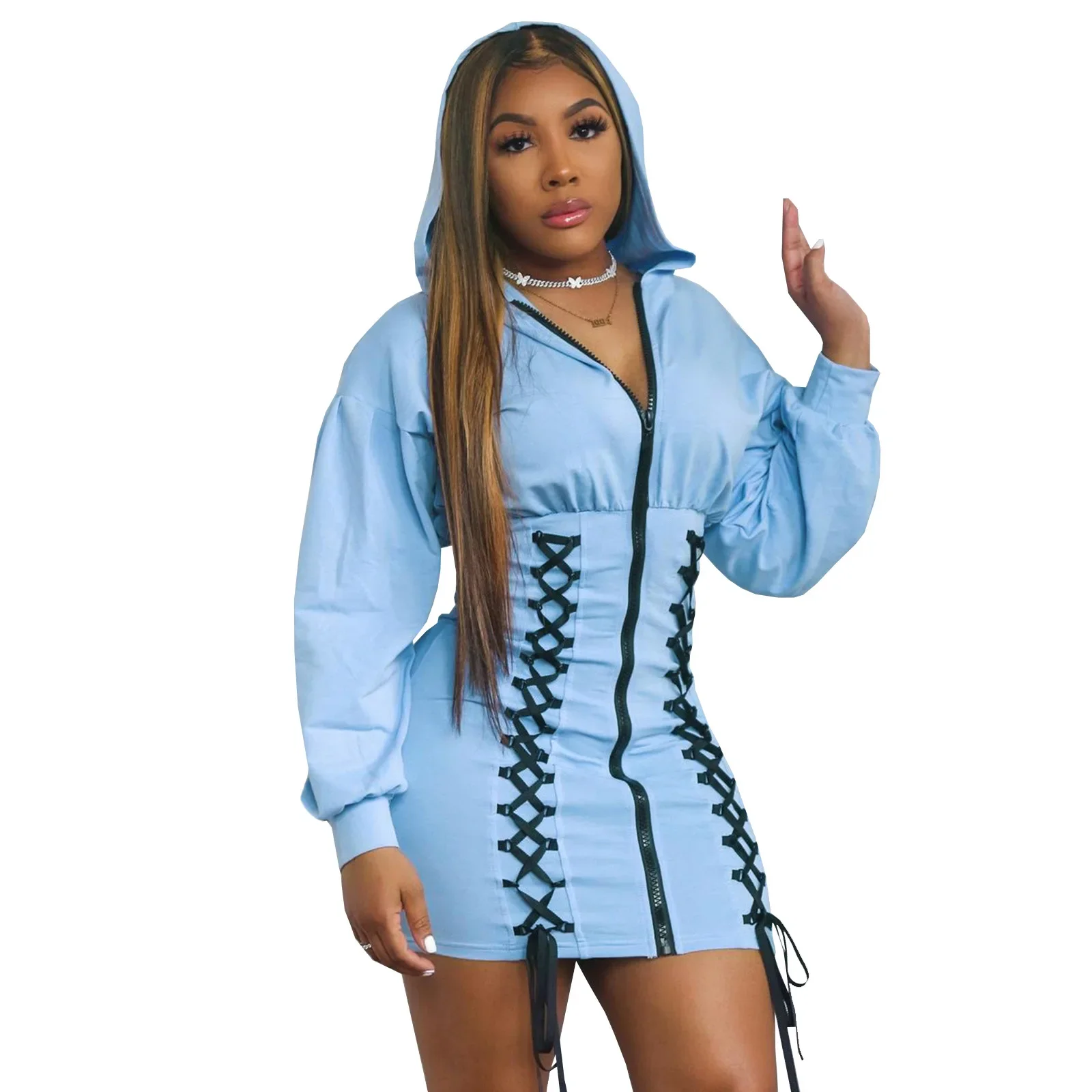 Africa Clothing Spring New Arrival 2024 Sexy African Long Sleeve High Waist Hooded Mini Bodycon Dress African Dresses for Women