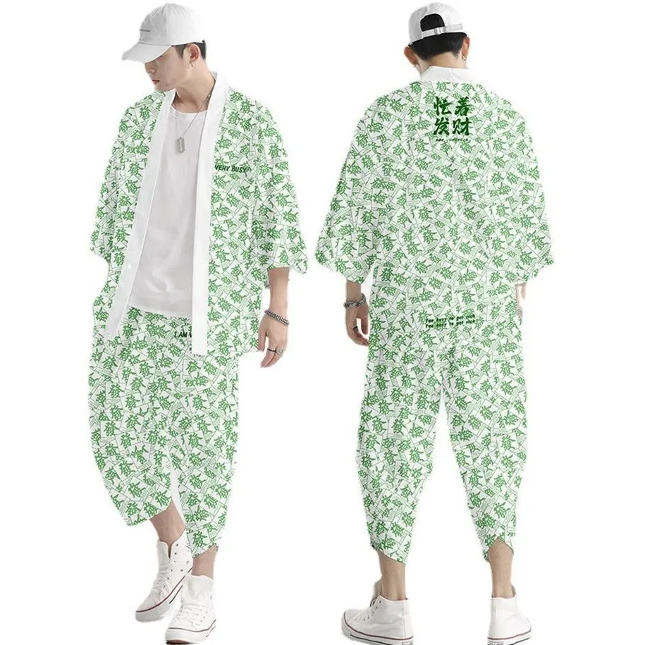 Name | Japanese Traditional Clothing Mahjong Print Kimono Pants Men Retro Yukata Asian Fashion Tang Suit Harajuku Hanfu Yukata Jacket |